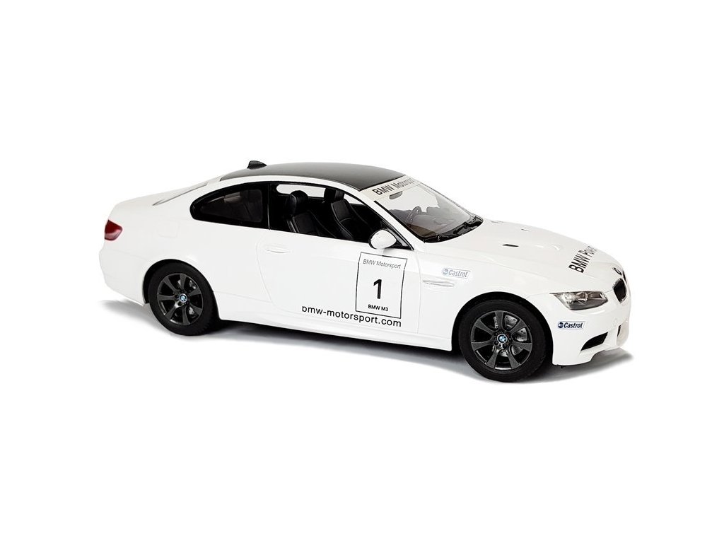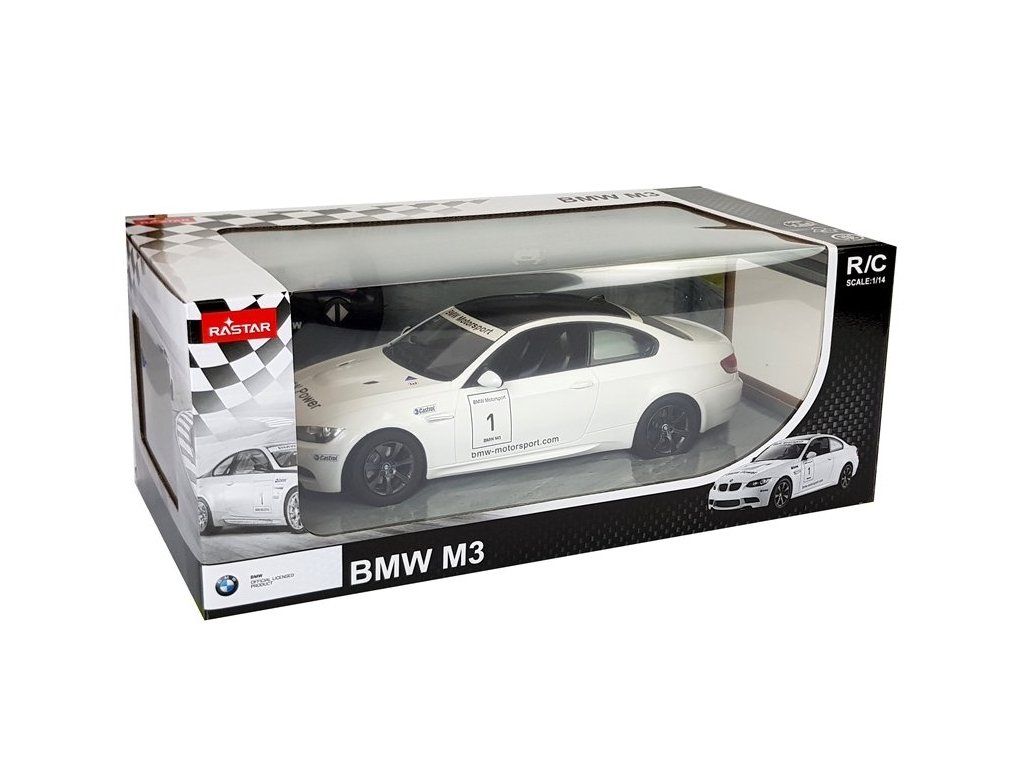 Дистанционно управление кола R/C BMW M3 Rastar 1:14 бяла е лицензиран продукт на компанията Rastar. Колата е произведена в мащаб 1:14. Дистанционното управление работи на честота 2,4 GHz. С помощта на дистанционното можем да управляваме движението на колата във всички посоки – напред, назад, наляво и надясно.