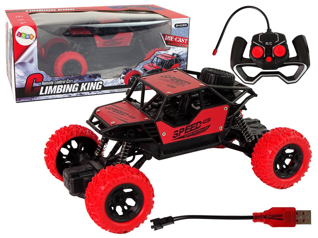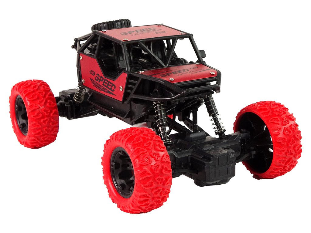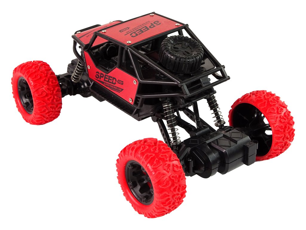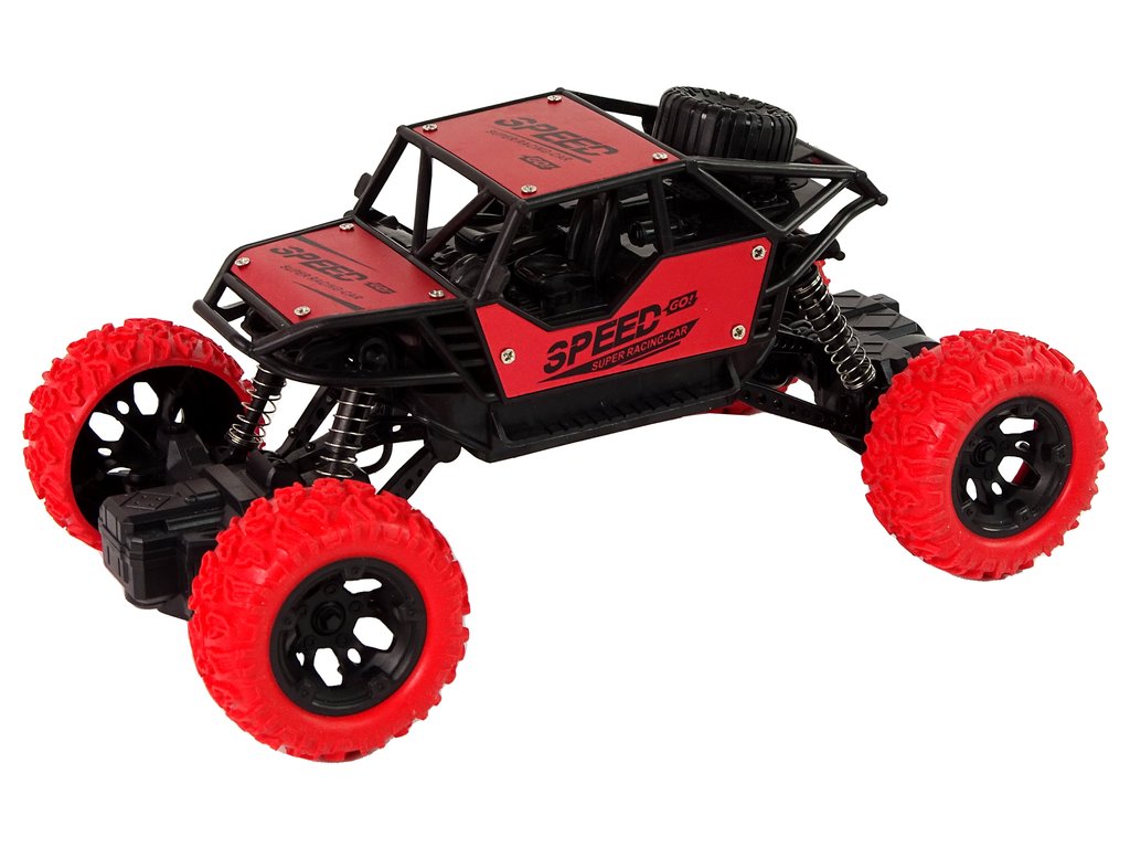 Дистанционно управляема теренна кола R/C 1:18 червена е оборудвана с гуми от мека гума и благодарение на амортисьорите лесно преодолява препятствията. Реалистичният дизайн на колата ще зарадва всяко дете. Дистанционното управление с червени бутони е леко, практично и идеално за малки ръце.