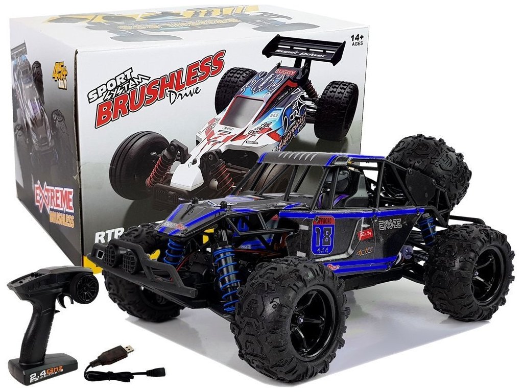 Дистанционно управлявано бъги R/C 4x4 Enzone 45 км/ч синьо е изработено в мащаб 1:18, което му придава изключително реалистичен външен вид. Комплектът включва удобен и прецизен контролер. Безжичното дистанционно управление работи на честота 2,4GHz, позволявайки ви да се състезавате в голяма група без взаимни смущения.