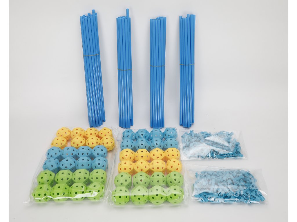 Конструкторът предлага лесно свързване благодарение на клик-принципа, който държи здраво, но позволява многократни преустройства. Големите сламки и накрайници осигуряват стабилност дори при по-високи конструкции, докато цветните и вариативни части придават атрактивен вид на всяко творение. В допълнение, използвани са безопасни материали от нетоксична пластмаса, които са тествани за деца.Играчката подпомага развитието на фината моторика, разбирането на основни геометрични връзки, пространственото мислене, креативността и търпението.