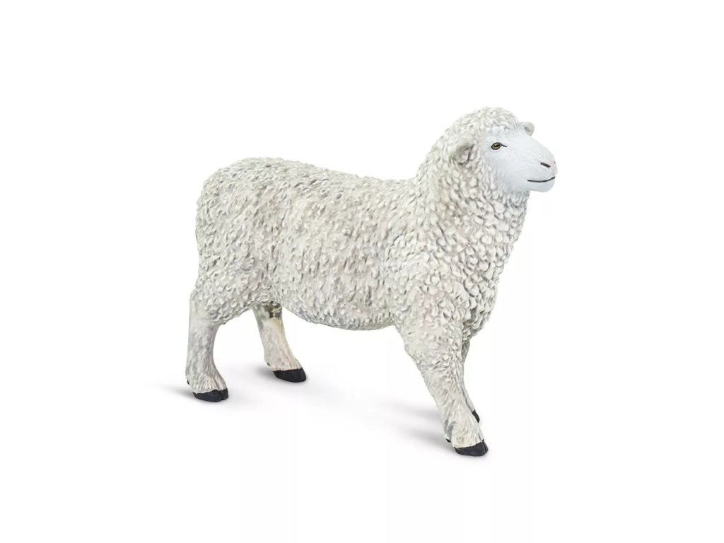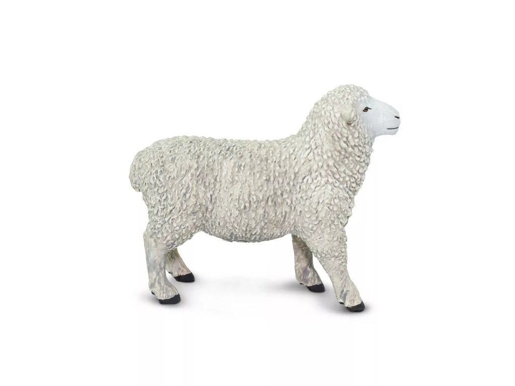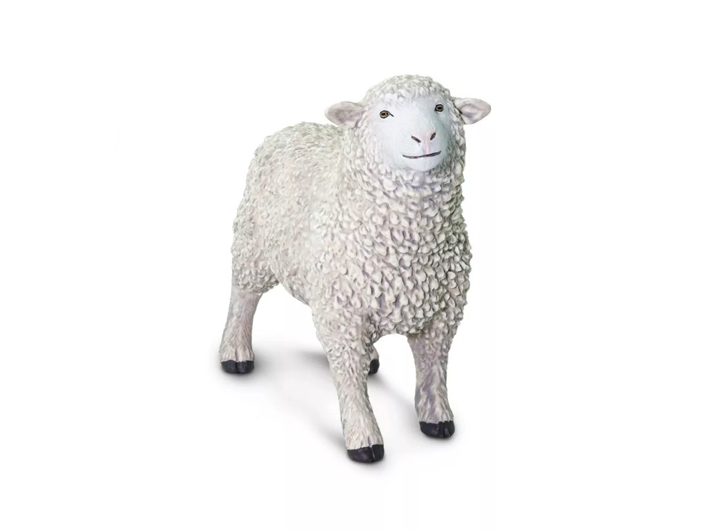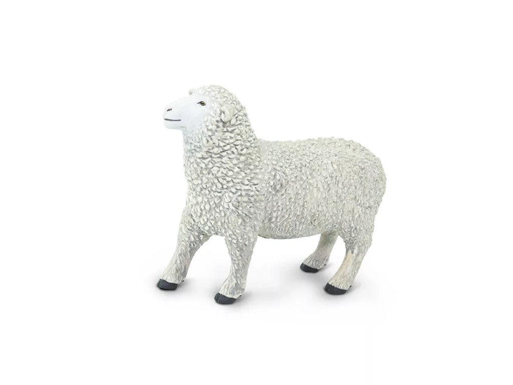 Детайлно изработена пластмасова фигурка на овца от фирма Safari Ltd., проектирана с акцент върху автентичността и ръчната довършителна работа.