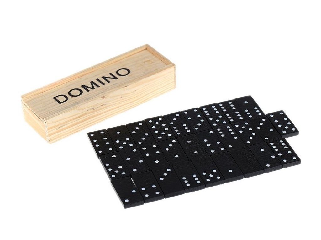 - Домино игра в дървена кутия съдържа комплект плочки или камъчета, които от едната страна имат комбинация от числа.