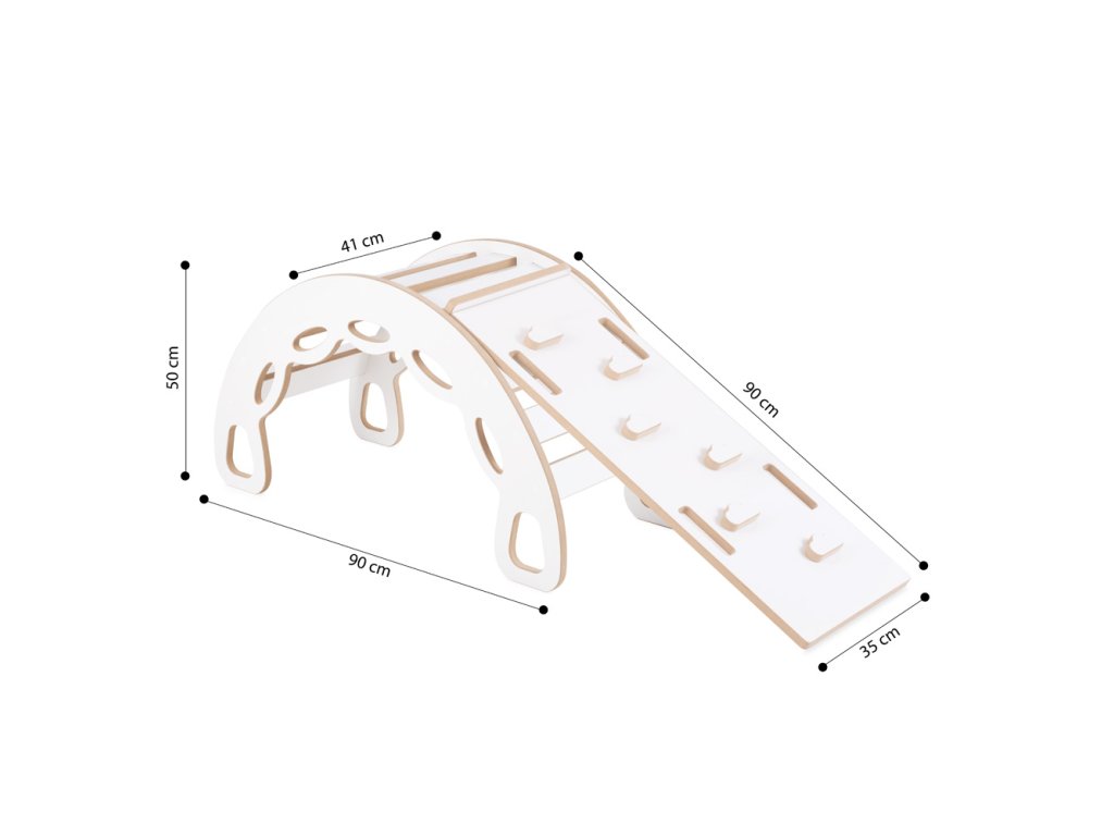 Стена за катерене и пързалка: Двустранна част, която ще се превърне в хит във всяка детска стая! От едната страна децата ще тренират катерене, от другата ще се насладят на пързаляне. Идеална комбинация от забавление и движение.