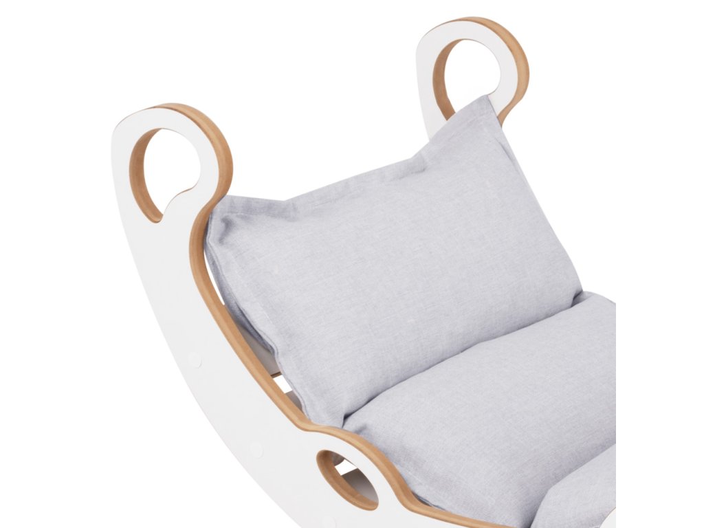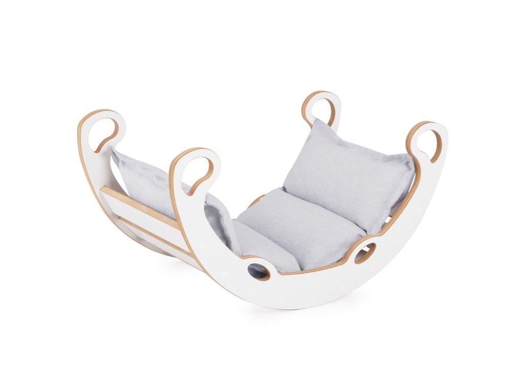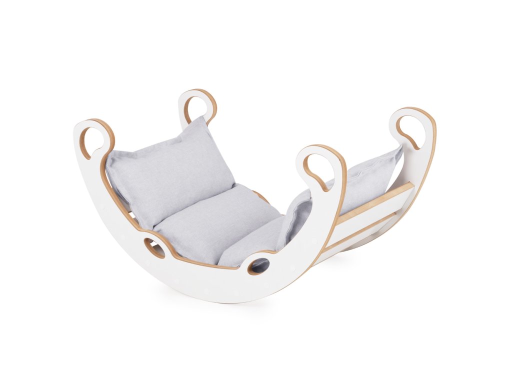 Люлката е изработена от висококачествен MDF – материал, който е издръжлив, гладък и безопасен за деца. Всички ръбове са внимателно заоблени и изгладени, а в комплекта е включена удобна, мека възглавница, която превръща всяко люлеене в истинско удоволствие. Просто обърнете люлката с главата надолу и тя се превръща в здрава стълба за катерене – идеална за малки изследователи и катерачи. Този начин на използване насърчава детската активност и самостоятелната игра.