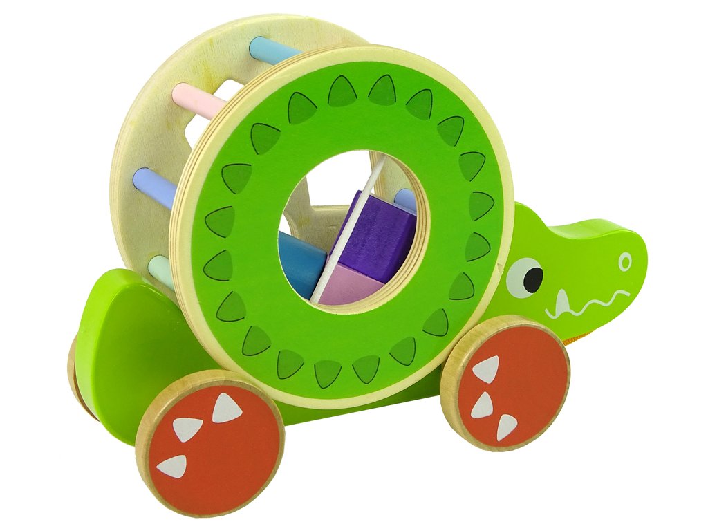 Дървен дърпане на крокодил пъзел е перфектната образователна играчка за малки деца. Без да се усетят, децата свързват играта с ученето. Големият кръг с отвор за сортиране на 3 блока, разположен на гърба, помага за упражняване на точността, изучаване на формите на геометричните фигури и подобряване на концентрацията.