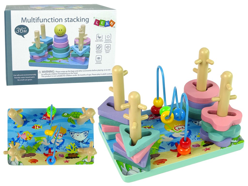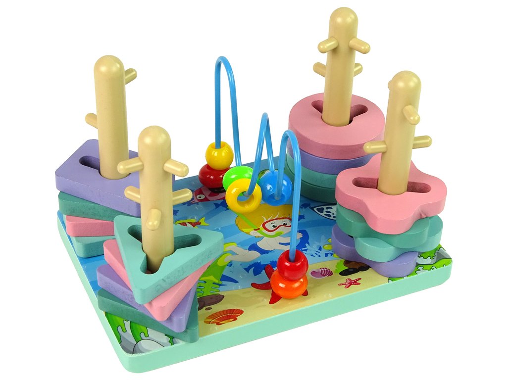Тази играчка помага за развитието на визуално-моторни умения, търпение и пространствена представа.