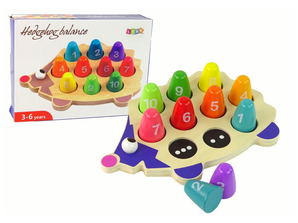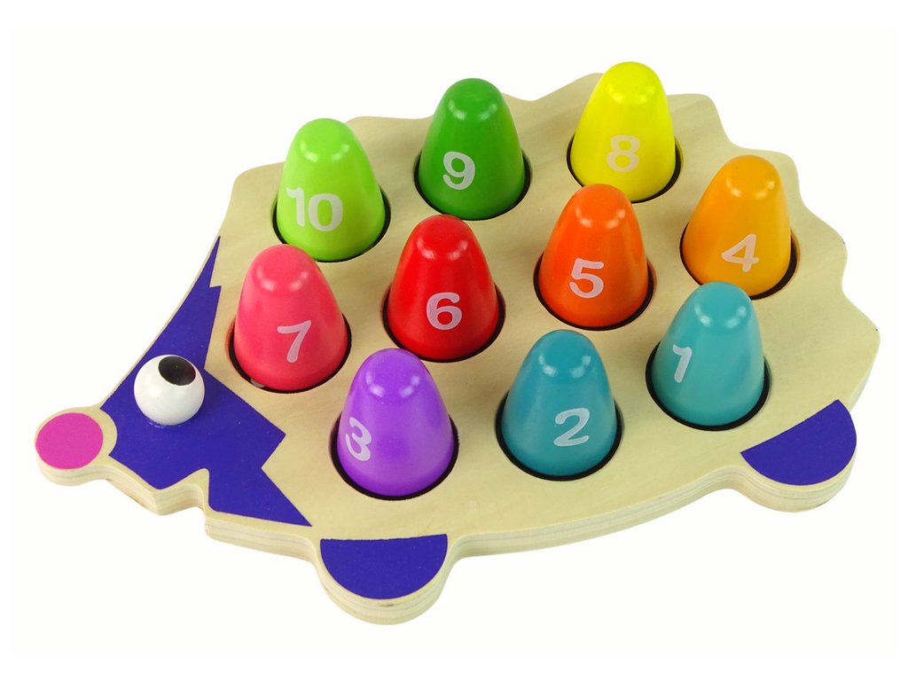 Основният елемент на тази играчка са цветните щипки, които наподобяват бодлите на таралежа. Всяка щипка има ясно видимо число, което предоставя чудесна възможност за учене чрез игра. Вашето дете може да упражнява аритметичните си умения като съпоставя правилните числа с отделните участъци на таралежа, като същевременно развива координацията между ръцете и очите и концентрацията си.