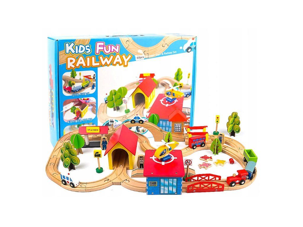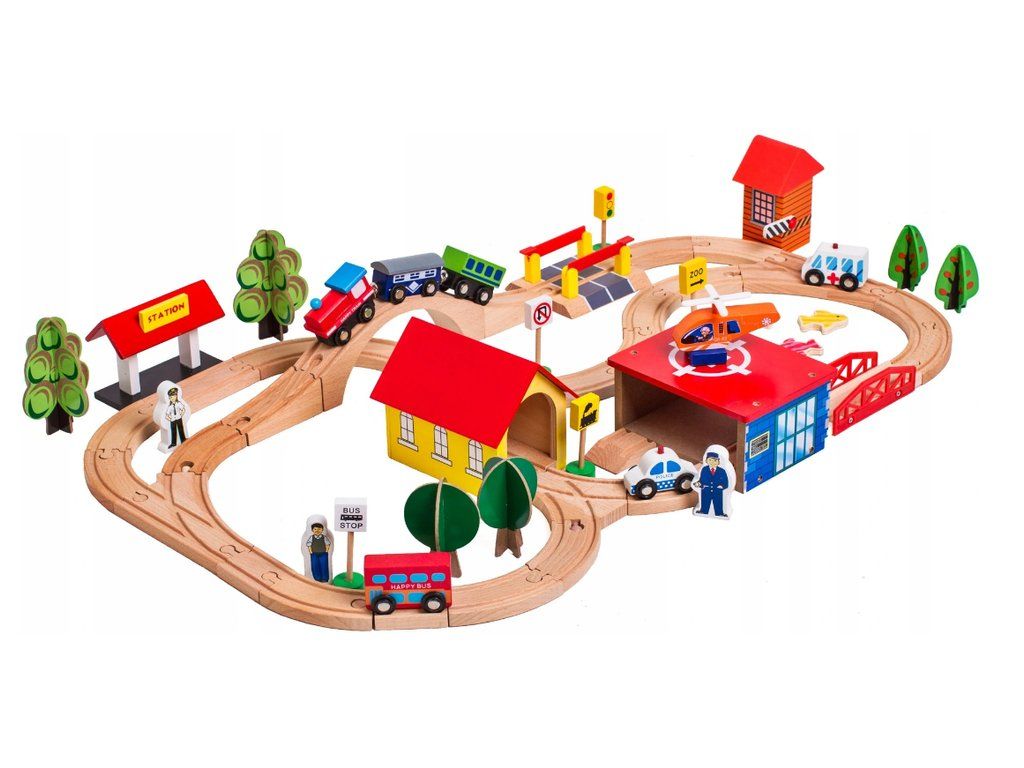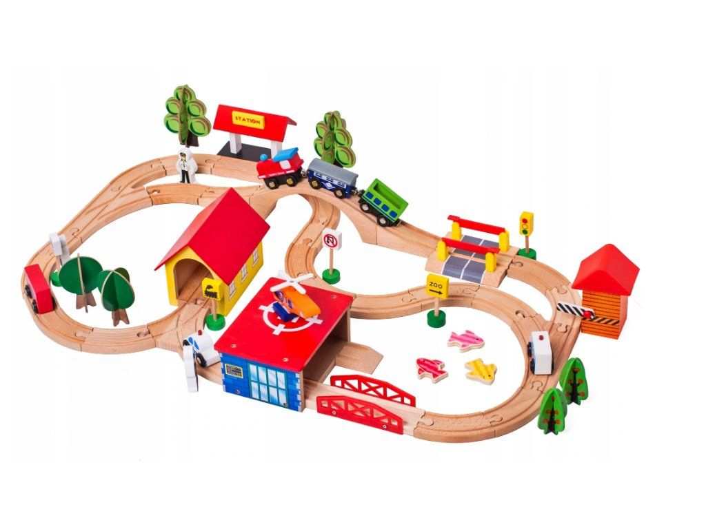 Дървен влак с аксесоари