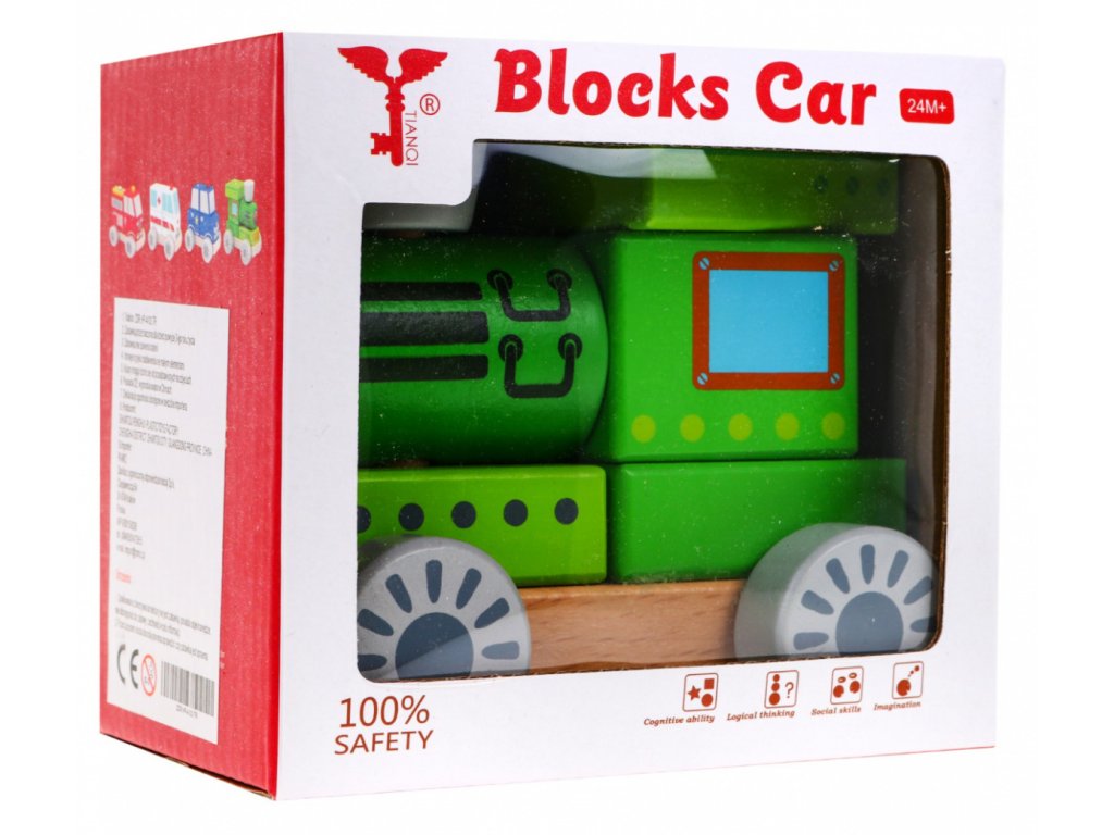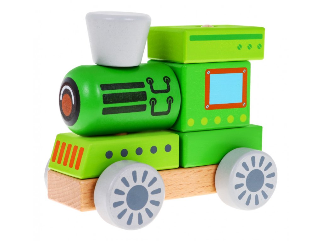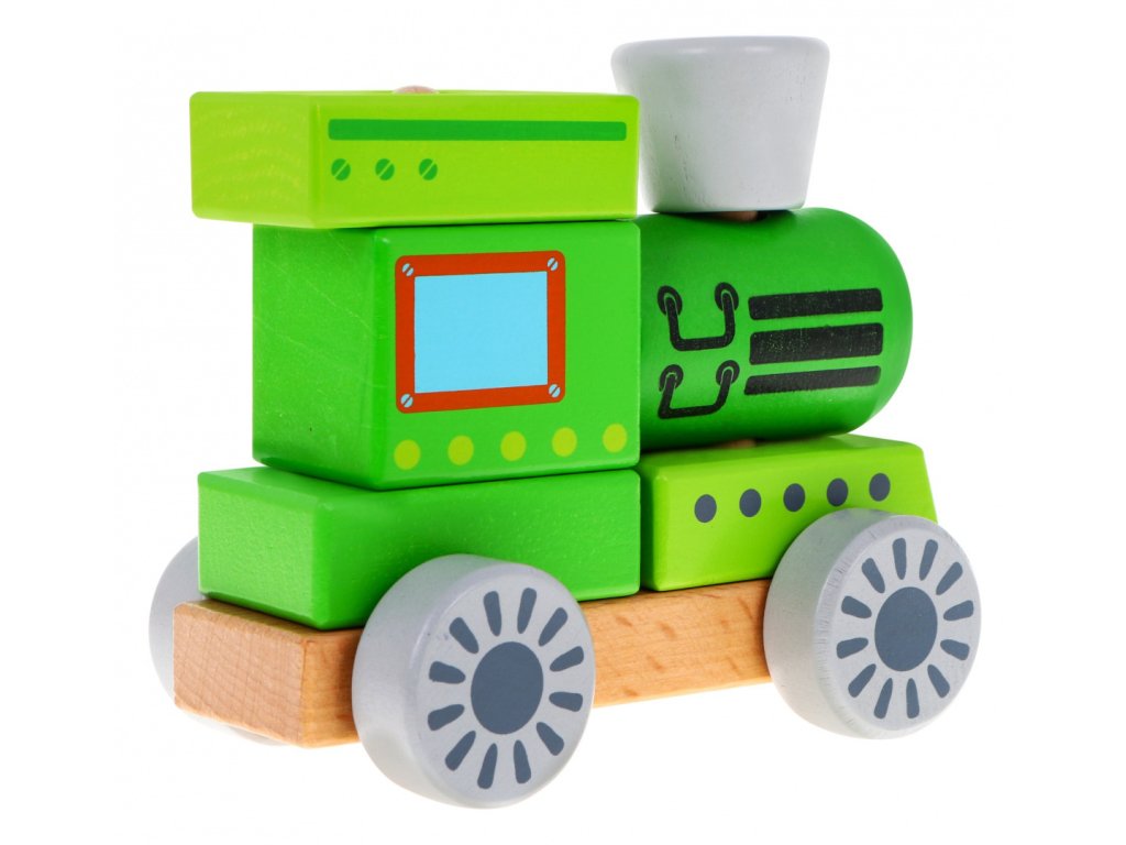 Дървеният влак се състои от основа и шест кубчета. Към основата са прикрепени четири подвижни колела и два щифта, върху които се поставят дървените кубчета, които при сглобяване образуват подвижно дървено влакче.