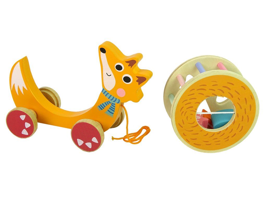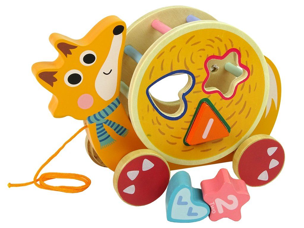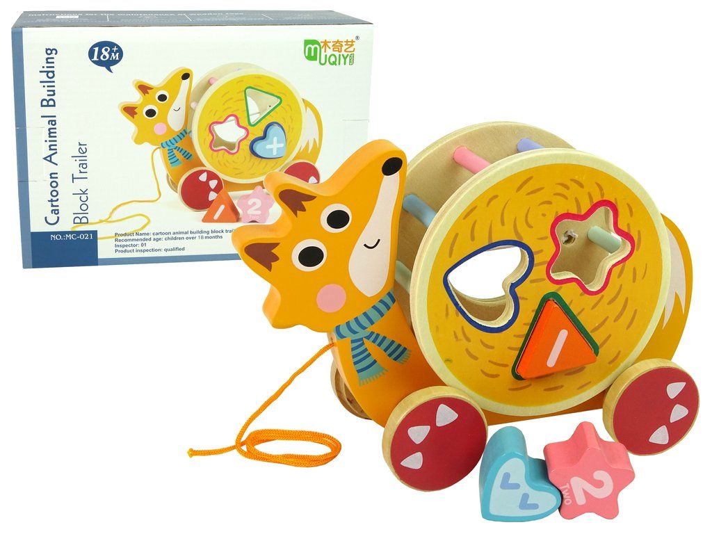 Дървена дърпана лисица пъзел е перфектната образователна играчка за бебета. Без да осъзнаваме, съчетаваме играта с усвояването на умения. Големият кръг с отвор за три блокчета, разположен отзад, помага за упражняване на прецизността, учи децата на формите на геометричните фигури и развива концентрацията им.