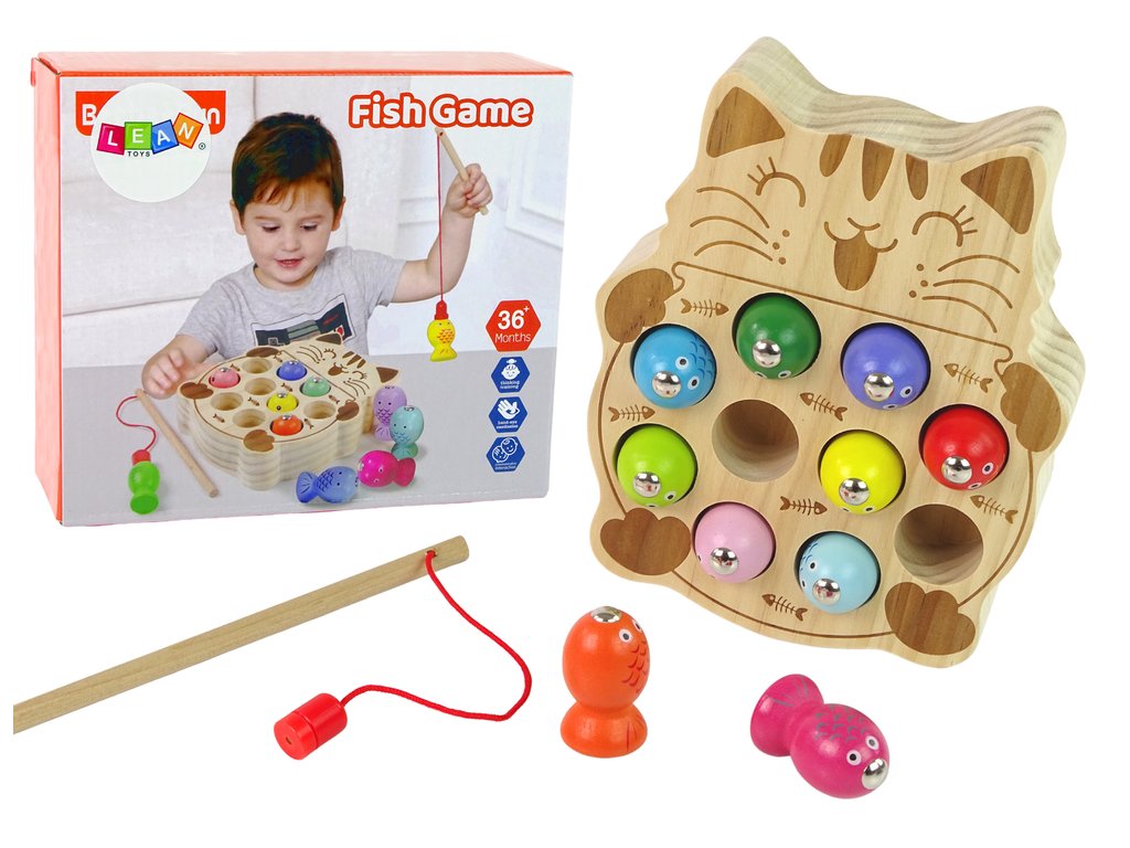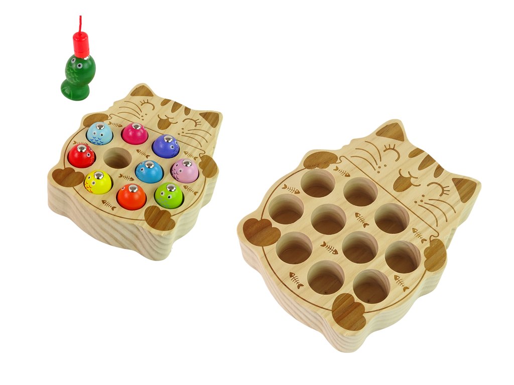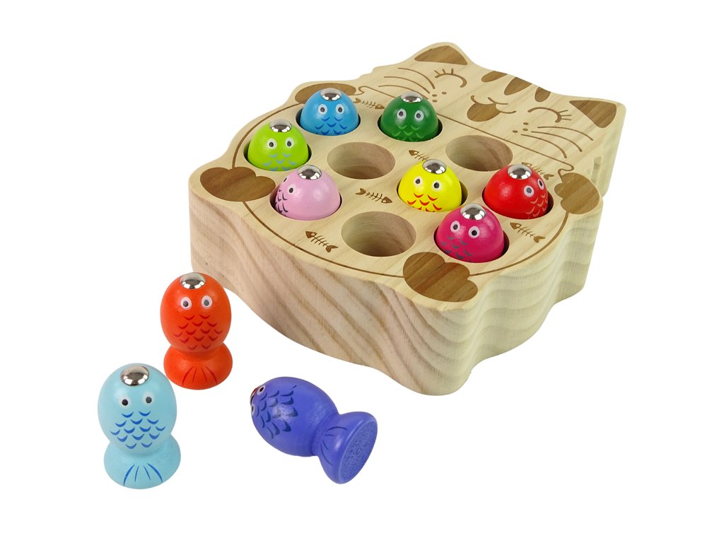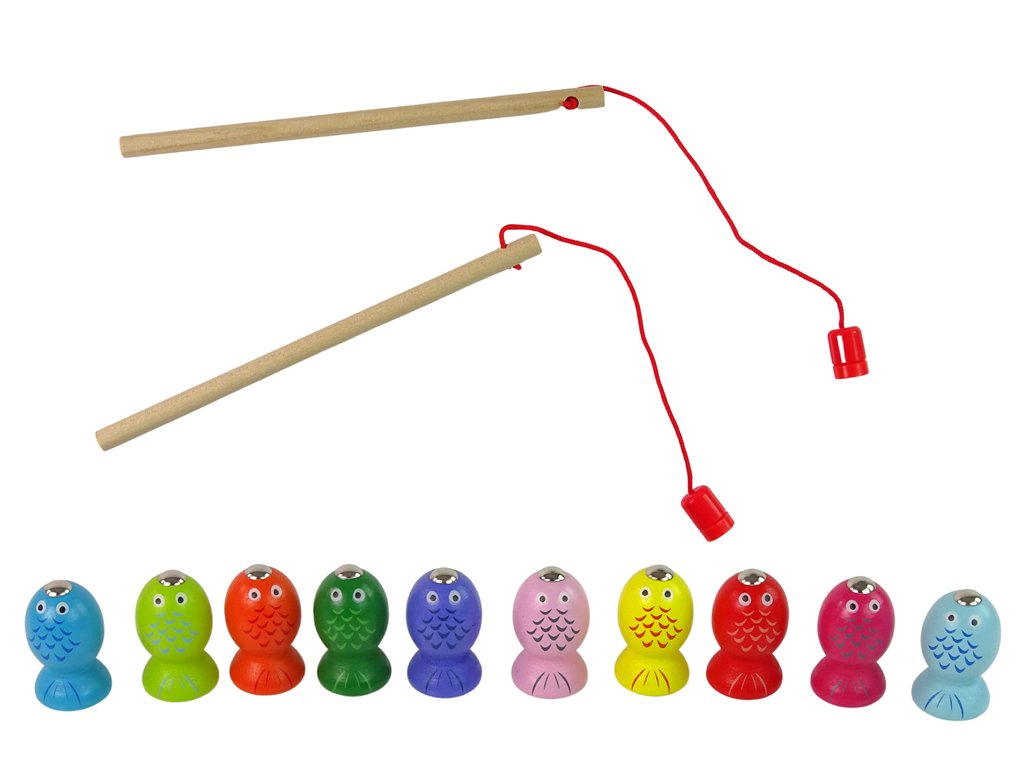 Дървена игра за ловене на рибки е забавна игра, която развива рефлекси, сръчност и концентрация. На всяка от въдиците има прикрепен магнит, чрез който се ловят малки дървени рибки. Играчът, който улови най-много рибки, печели!