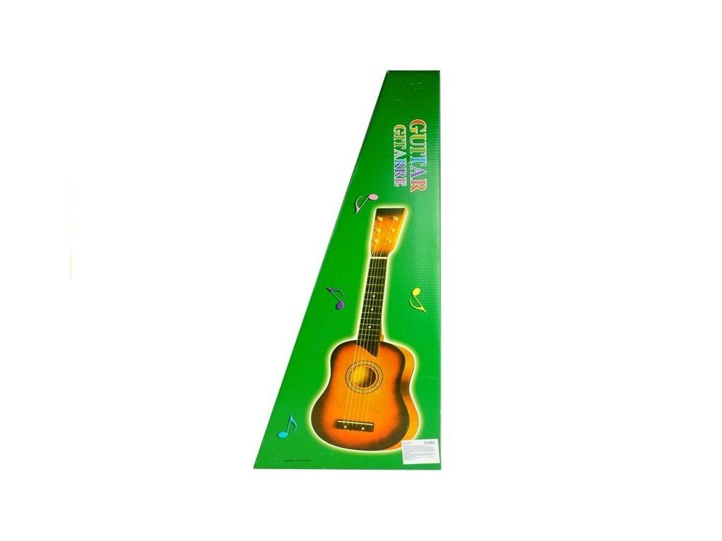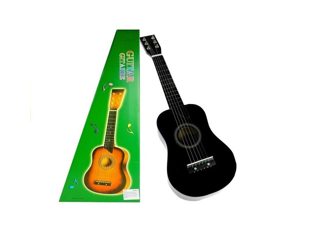 Дървена китара с черна метална плочка е идеалният избор за малките музиканти. Този истински музикален инструмент е със специално пригоден размер за деца, за да могат да свирят комфортно. Шестте струни могат да бъдат настроени, което позволява създаването на реални мелодии и красива музика. Китарата е изработена от висококачествен лакиран дървен материал с прецизна изработка. Перфектен подарък за развитие на музикалния таланту и любов към музиката.
