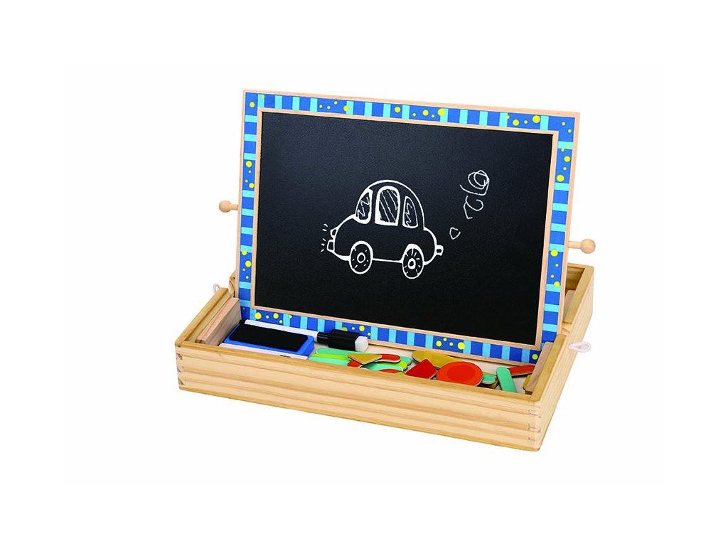 Запознайте се с Дървена креативна дъска – магнитна мозайка, идеална за деца над 3 години. Тази многофункционална играчка стимулира креативността, фината моторика и логическото мислене. Едната страна на дъската е магнитна, а другата служи като тебеширена дъска. комплекта включва цветни магнитни форми, с които децата могат да подреждат различни картинки, както и тебешири и гъба за изтриване. Изработена от безопасни и екологични материали, играчката е здравa и щадяща детската кожа.