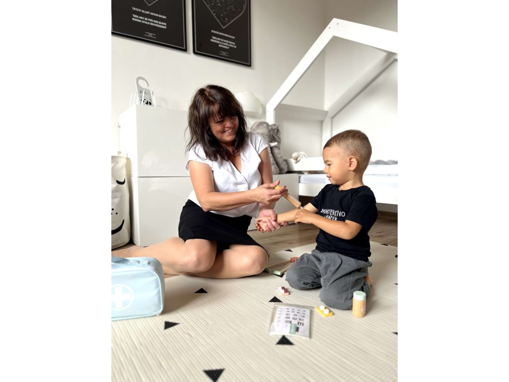 Станете малък лекар с Дървена медицинска кутия – Малък доктор, идеална за деца над 3 години. Този комплект включва всички необходими инструменти за грижа за пациентите, включително стетоскоп, спринцовка, термометър, лекарства и други. Играчката насърчава креативната игра и развива фината моторика. Изработена от безопасни и екологични материали, кутията е издръжлива и щадяща детската кожа.