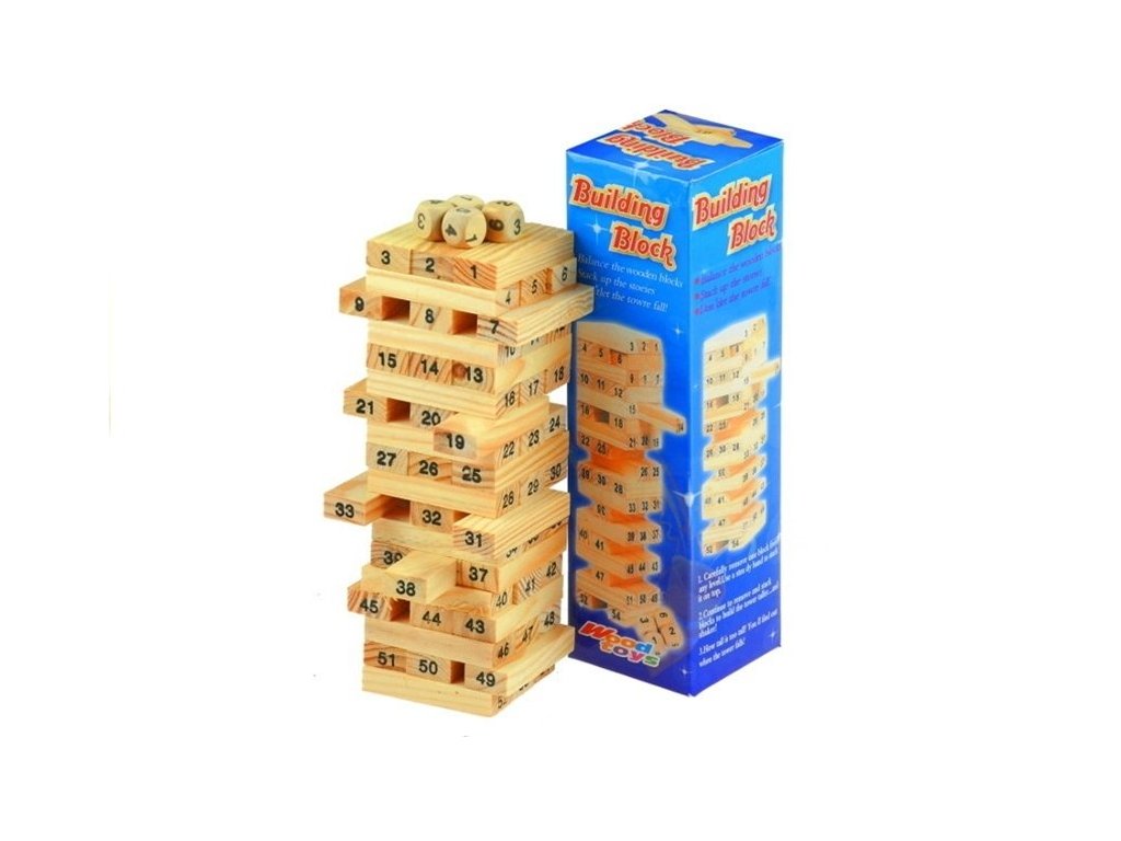 Голямо предизвикателство за всички любители на игри за сръчност. Дървена настолна игра кула Дженга е проста, но същевременно прецизна игра, която може да осигури забавление за много часове. Целта е да построите кула и да сте достатъчно внимателни и сръчни, за да не се срути тя. В комплекта ще намерите зарове за игра, които при желание можете да използвате. Препоръчва се за деца над 8 години.