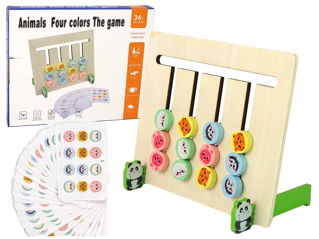Представяме ви двустранната игра Четири цвята, която учи разпознаването на животни и цветове и тяхното съчетаване. Детето чрез играта се учи ефективно да мисли и да решава пъзели.