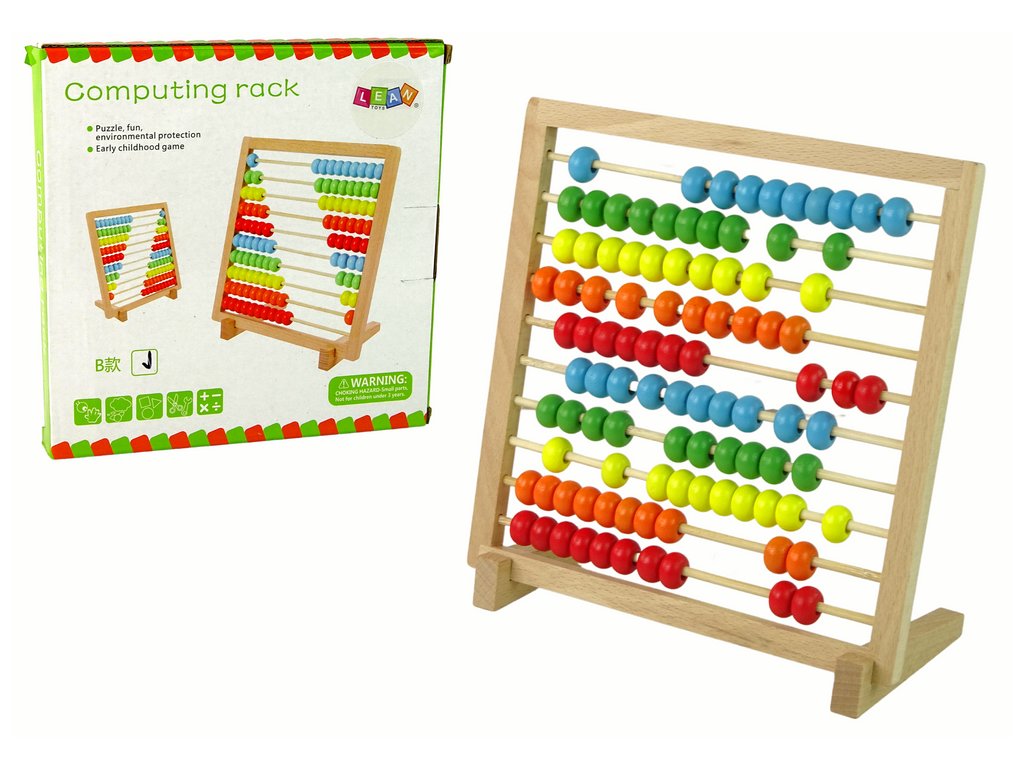 Дървена училищна броялка е образователна играчка за деца над 3 години. Броялката разполага с цветни мъниста, изглежда красиво и привлича вниманието на детето. Играта е много полезна при усвояване на събирането и изваждането, като същевременно учи цветовете и формите.