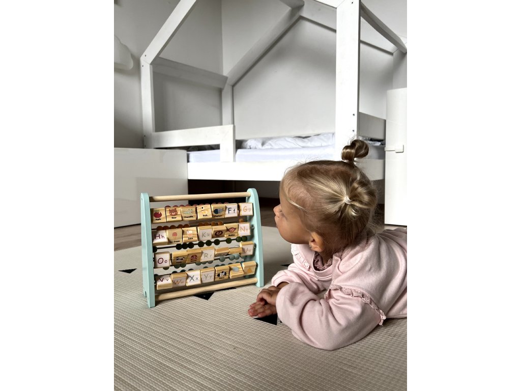 Представяме ви Дървена въртяща се азбука - Животни, идеална за деца над 12 месеца. Тази образователна играчка е проектирана да подпомага развитието на фината моторика, координацията око-ръка и усвояването на азбуката. Играта включва въртящи се блокчета с букви и сладки изображения на животни от едната страна и цветни топчета от другата, които детето лесно може да завърта и изследва. Изработена от безопасни и екологични материали, тази играчка е нежна към детската кожа и издръжлива.