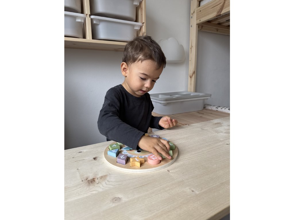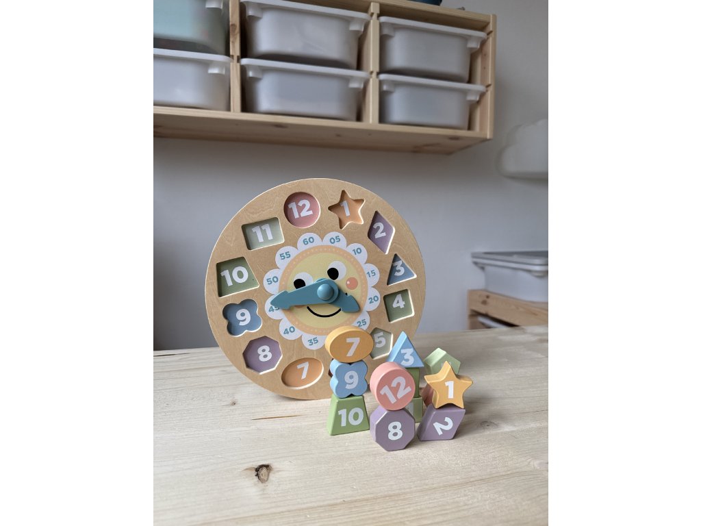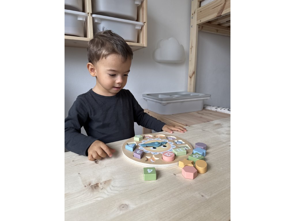 Представяме ви Дървени образователни часовници с пъзел Форми Монтесори, идеални за деца над 3 години. Тези часовници са създадени с цел да подпомогнат овладяването на числата, формите и основните понятия за времето. Играчката включва различни цветни форми, които децата могат да поставят на правилните места върху часовника, както и подвижни стрелки за упражнение на разпознаване на часа. Изработени от безопасни и екологично чисти материали, тази играчка е нежна към детската кожа и устойчива.