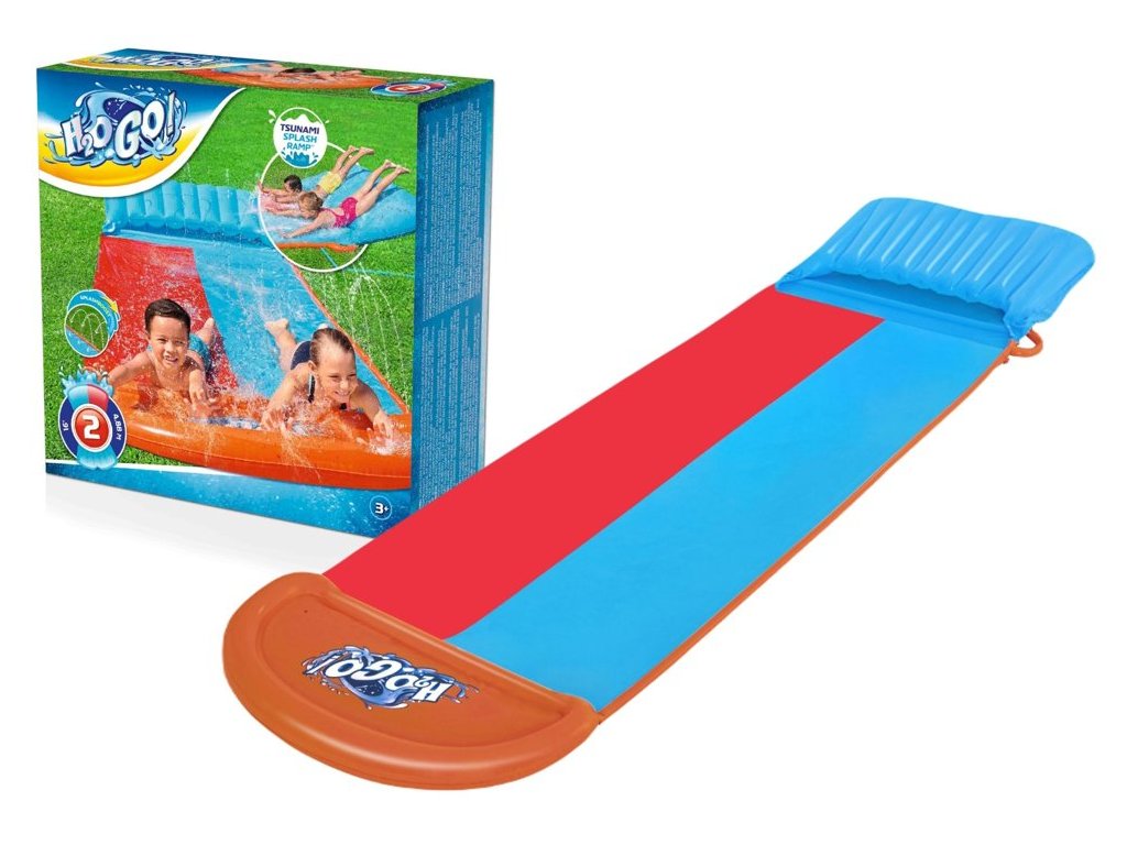 Двойната водна пързалка за градина с дължина 4,88 м е перфектна за класическа и винаги актуална детска забава на открито за всички деца над 3 години. Това е идеален начин за прекарване на свободното време и осигуряване на интересни игри. Просто разгънете пързалката, закрепете я здраво на земята и свържете градински маркуч. Благодарение на специалните обезопасителни елементи, включени в комплекта, пързалката остава стабилна на място.