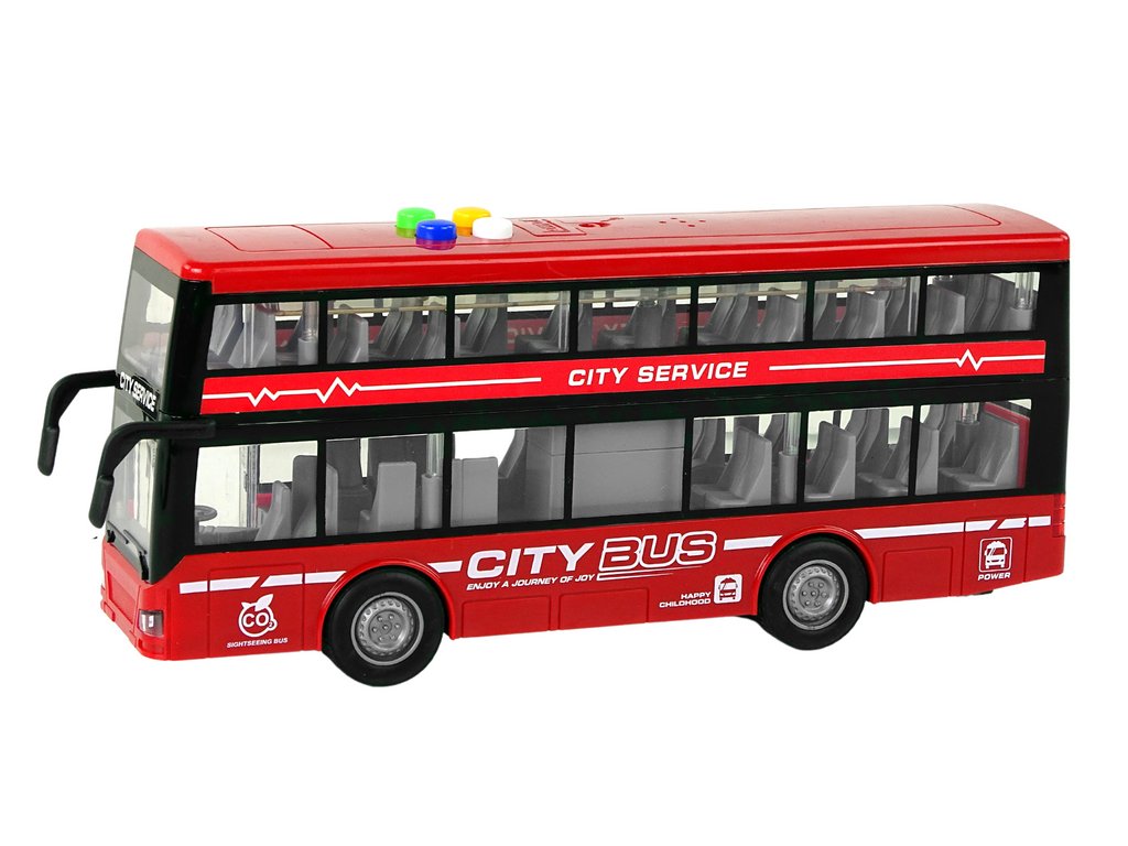 Двуетажен автобус с ефекти и фрикционно задвижване 1:16 червен