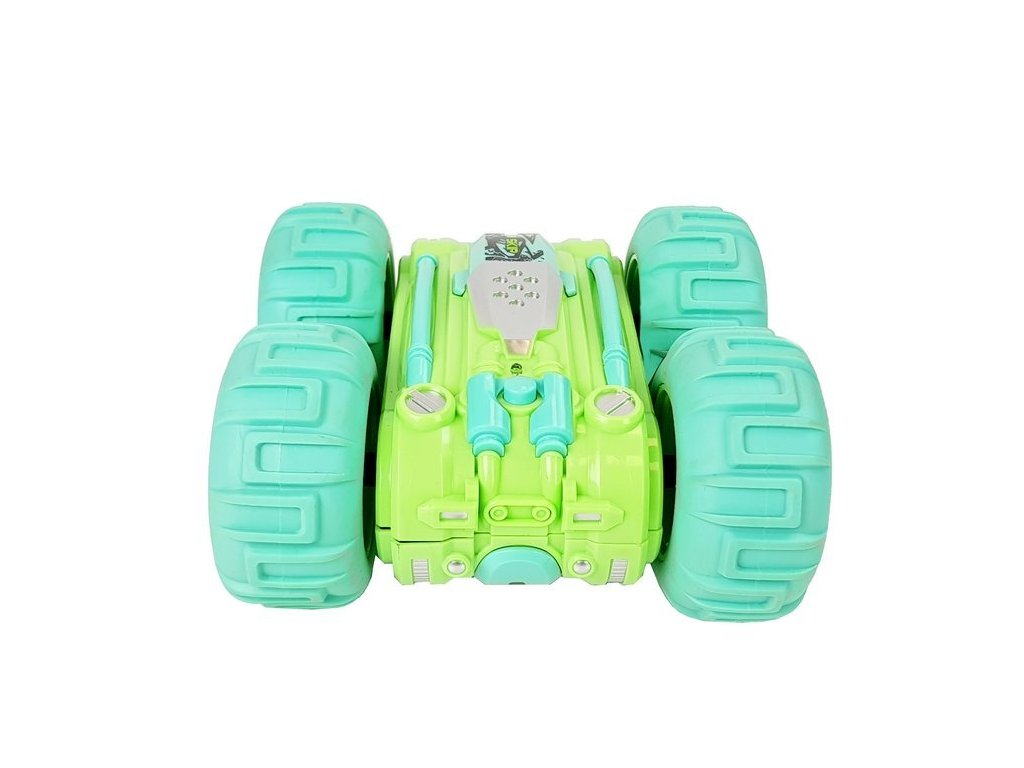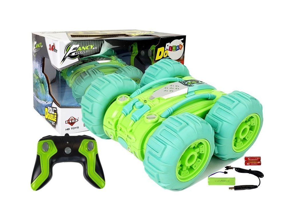 Двустранна дистанционно управлявана кола R/C 1:24 зелена с големи надуваеми гуми и уникално окачване се справя с всякакви терени, гарантирайки незабравимо забавление. Комплектът включва удобен дистанционен контролер с честота 2,4 GHz за максимално удоволствие от управлението. Благодарение на впечатляващата мощност и спортния дизайн, този автомобил е идеален както за по-малки, така и за по-големи момчета.