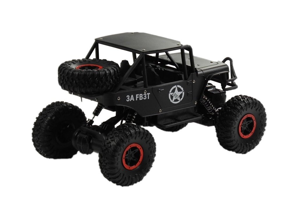 Джип с дистанционно управление R/C 1:18 черен е автомобил, който гарантира на потребителя страхотно забавление! Той разполага с множество функции, които не се срещат при други модели радиоуправляеми коли, като 4x4 задвижване, амортисьори и функция завъртане. Високата му проходимост и големите гуми позволяват безпроблемно шофиране по неравен терен. Радиоуправляемият автомобил се управлява чрез дистанционно управление с честота 2,4 GHz, което осигурява стабилна връзка с джипа.