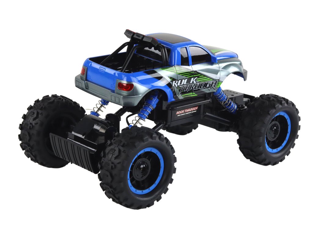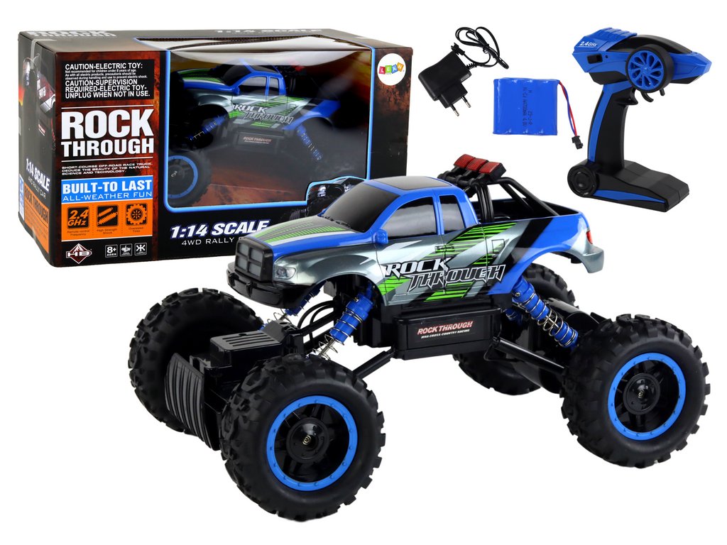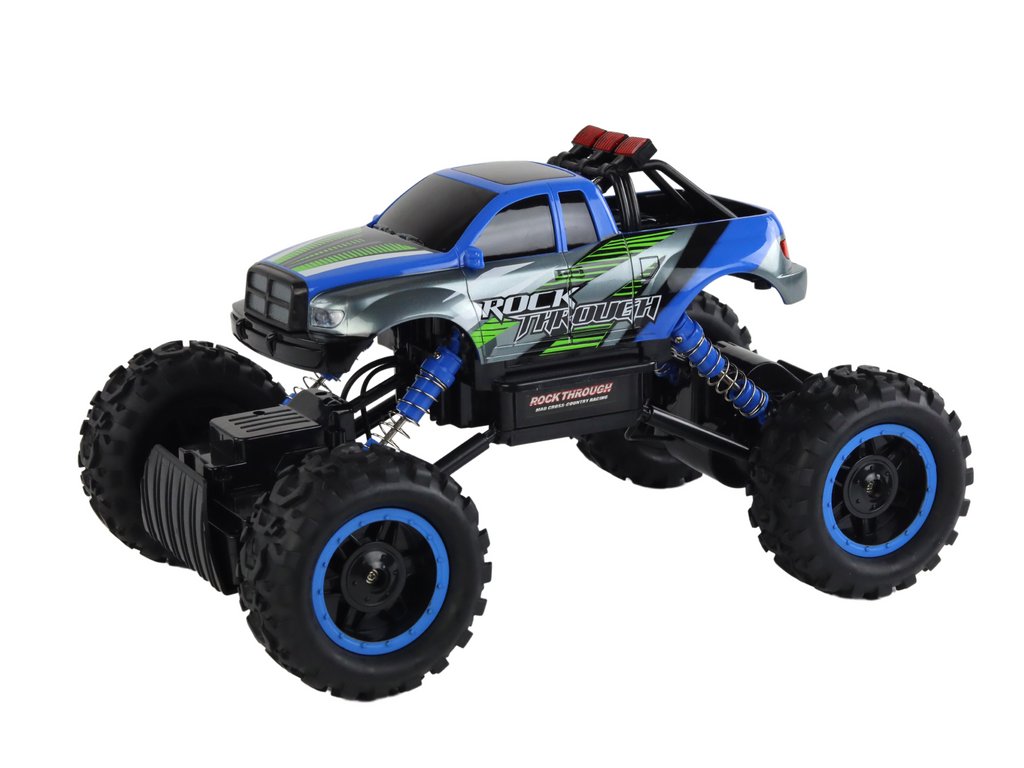 Представяме ви джип с дистанционно управление R/C 2,4 GHz 1:14 синьо. Със задвижване 4x4, той притежава изключителна мощност, която му позволява да преодолява всякакви препятствия. Високите гуми и специалната конструкция на окачването гарантират, че неравностите по терена не са проблем.