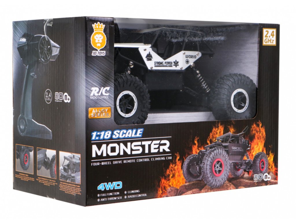 Джип за дистанционно управление Crawler Monster 1:18 сребрист е изработен в мащаб 1:18. Моделът разполага с задвижване на четирите колела. Дистанционното управление работи на честота 2,4 GHz. Конструкцията на джипа е устойчива на удари и падания, което гарантира по-добра производителност по време на управление.