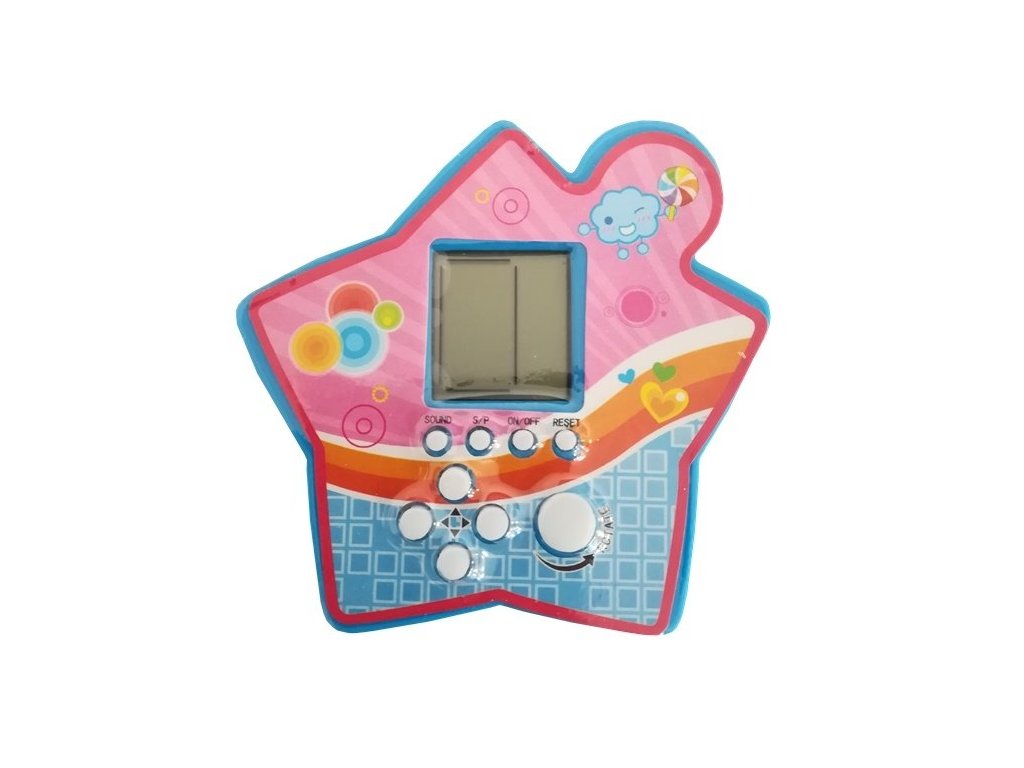 Джобна електронна игра Тетрис синя е една от най-популярните игри за трениране на ума. Целта е да завъртате блокове с различни форми, за да ги подредите на дъската така, че да запълнят цял ред. Когато завършите ред, той изчезва, освобождавайки място за нови елементи, докато дисплеят се запълни. По време на игра можете да видите кой блок е следващият, което позволява аналитично планиране на следващия ход. С всеки премахнат ред скоростта на играта се увеличава и блоковете падат по-бързо. Електронната игра в калъф с форма на звезда е много лека, което в комбинация с компактните размери я прави удобен джобен вариант, който може да вземете навсякъде с вас. Състои се от дисплей и бели бутони, отговарящи за игровите функции. Те могат да се използват за стартиране и изключване на играта, пауза, изключване на звуците или ресетиране на дъската, за да започнете подреждането на блоковете отначало. Останалите бутони служат за навигация по време на игра и за завъртане на блоковете. Джобната версия на електронната игра осигурява забавление както за деца, така и за възрастни. Идеална е за почивка между учебни часове, в автобус или вкъщи при релакс.