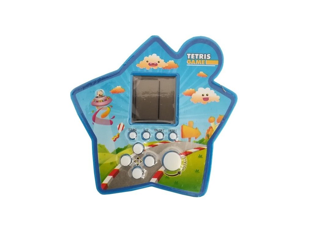 Джобна електронна игра Тетрис синя е една от най-популярните игри за тренировка на ума. Целта е да завъртате блокове с различни форми, така че да могат да се подредят на игровото поле и да запълнят цял ред. Електронната игра в корпус с форма на звезда е много лека, което я прави, комбинирана с малките размери, идеален джобен вариант, който може да носите навсякъде със себе си.