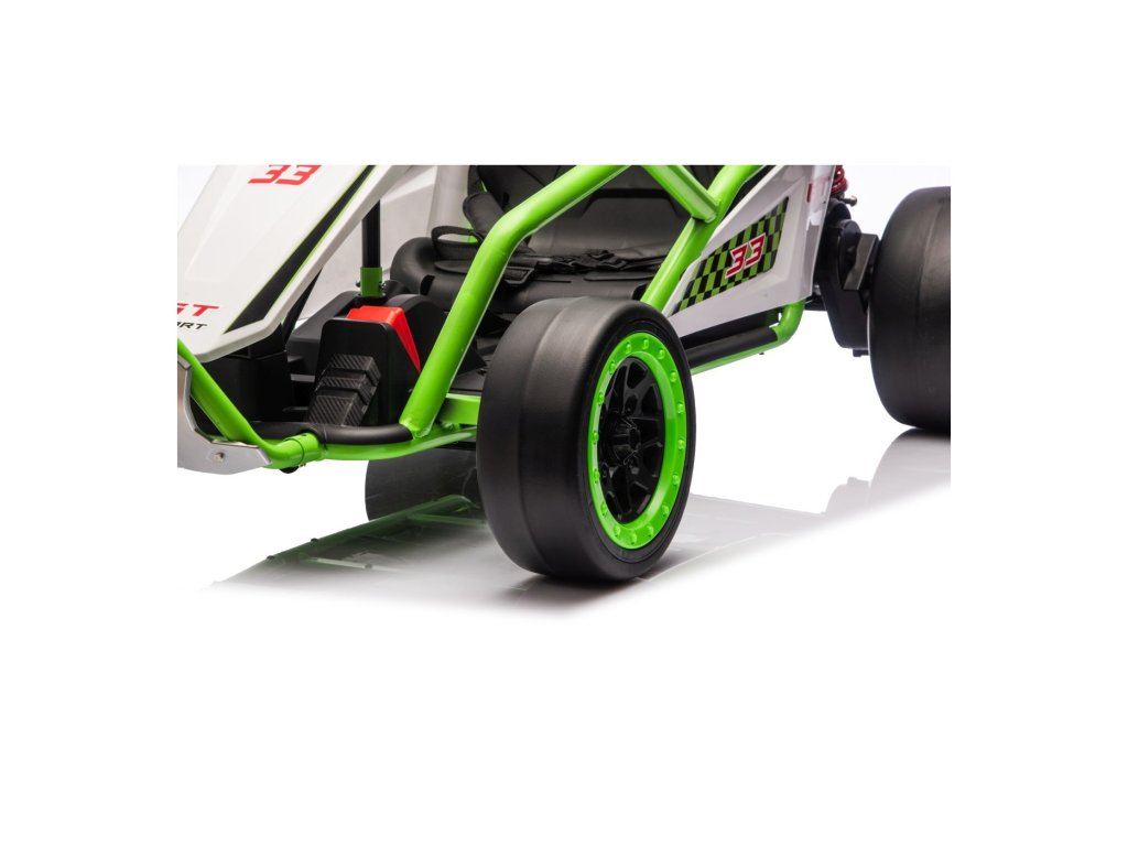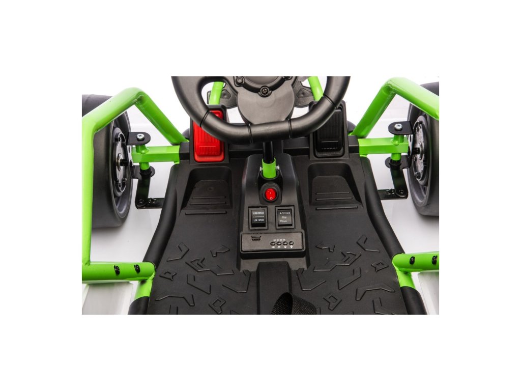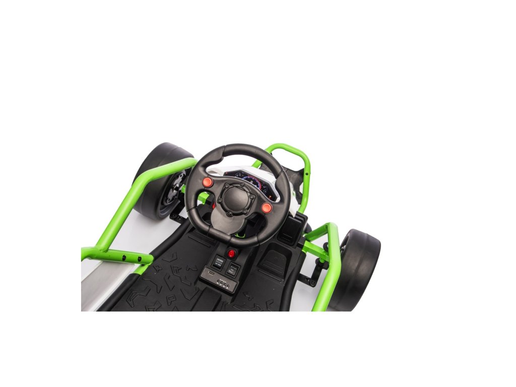 Електрическият картинг TORNADO с функция дрифт носи перфектно изживяване при шофиране за всички малки любители на скоростта. Благодарение на двата мощни мотора, специалните задни колела, предназначени за дрифт, и спортния дизайн, той предлага максимално забавление и безопасност. Чудесен е за гладки повърхности, където способността му за контролирано плъзгане се откроява напълно.