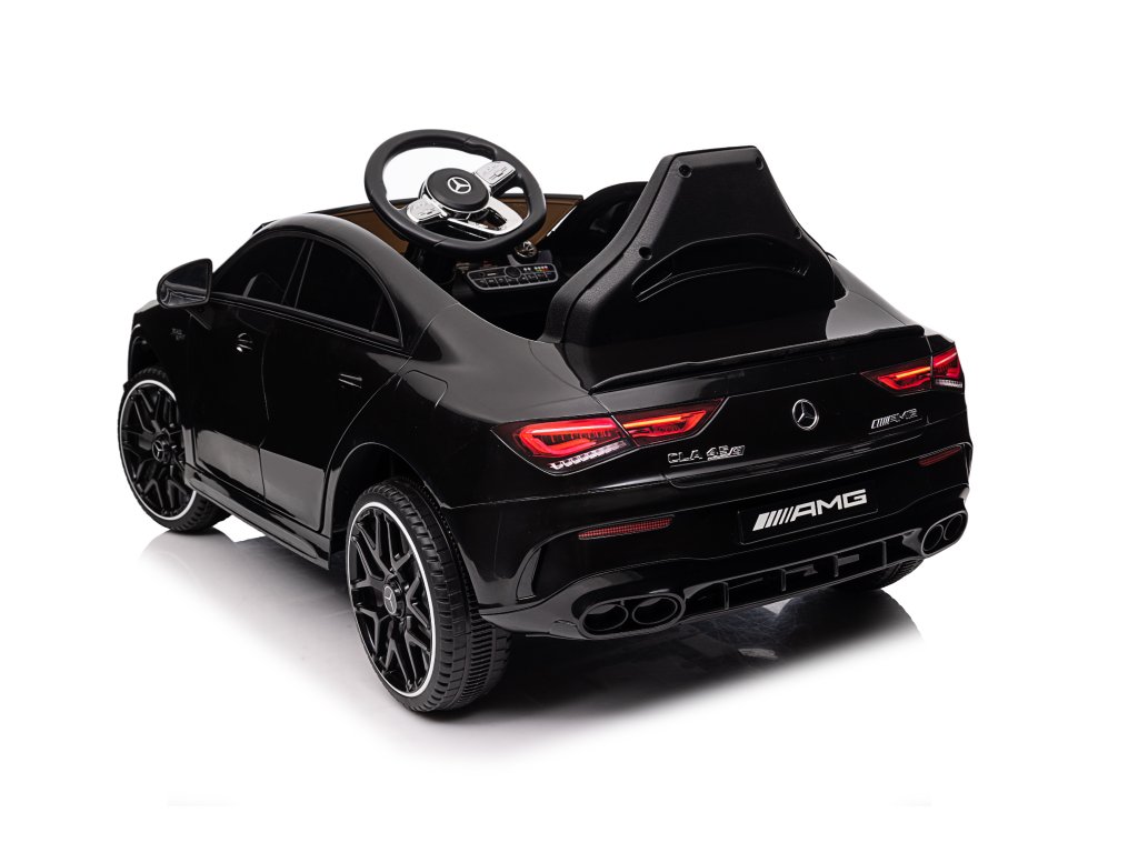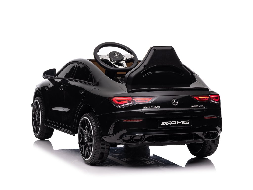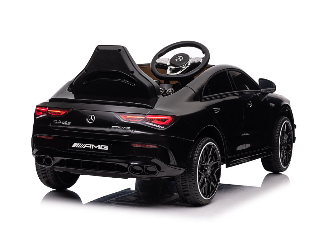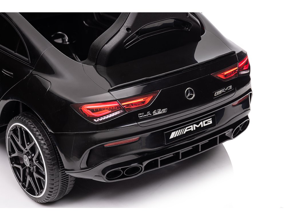 Електрическата количка Mercedes CLA 45S AMG не трябва да липсва в никой детски гараж. Количката се захранва от батерия с капацитет 12V 10Ah. Максималното натоварване на автомобила е 30 kg. По време на шофиране детето със сигурност ще бъде заинтригувано от музикалния панел с Bluetooth, радио и входове USB и MP3.