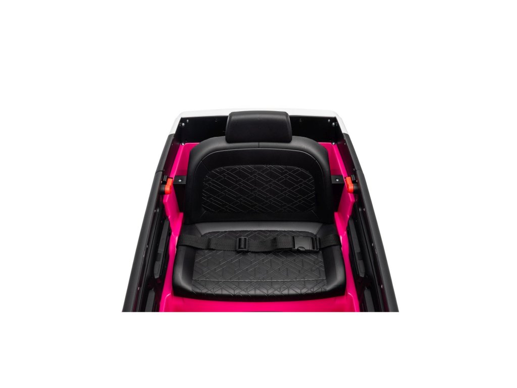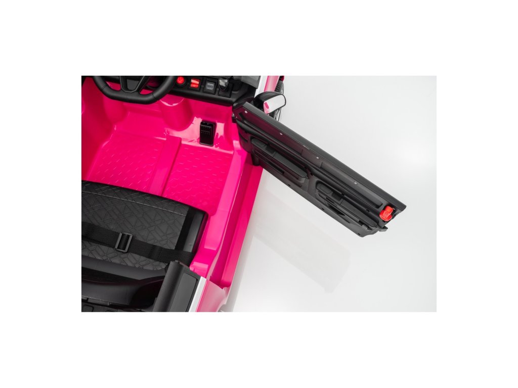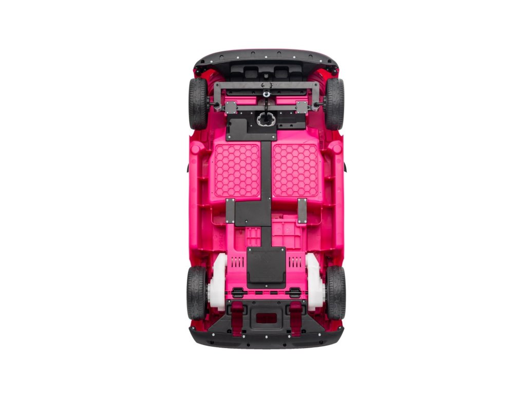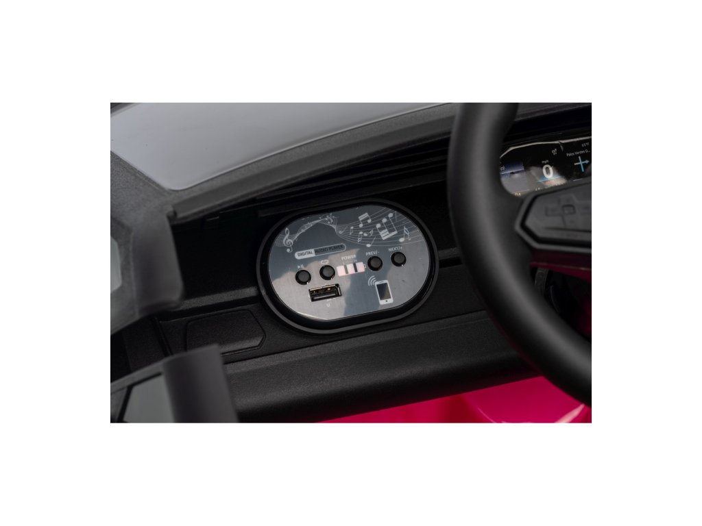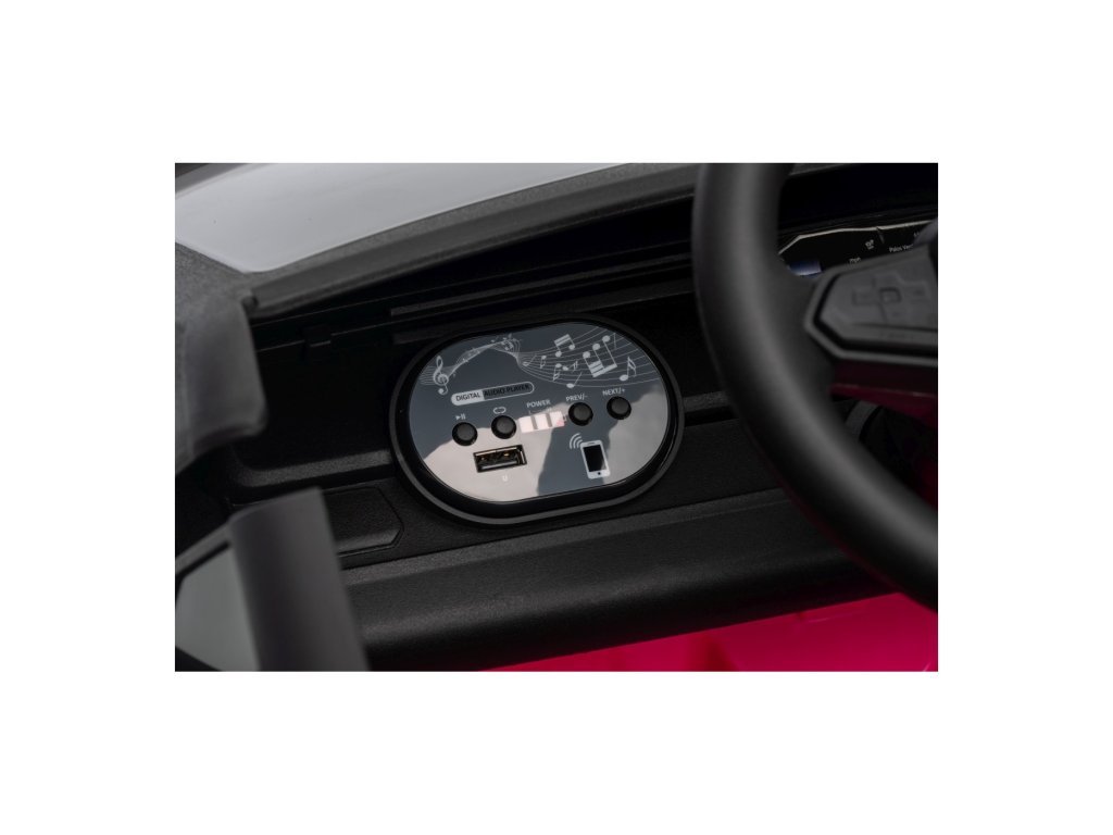 Можете да управлявате колата с помощта на дистанционно управление, което работи на честота 2,4 GHz. На дистанционното управление има три скорости и бутон за безопасност STOP, който спира колата веднага след натискане. Седалката е покрита с екологична кожа и има предпазни колани.