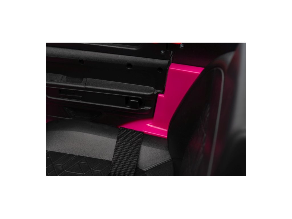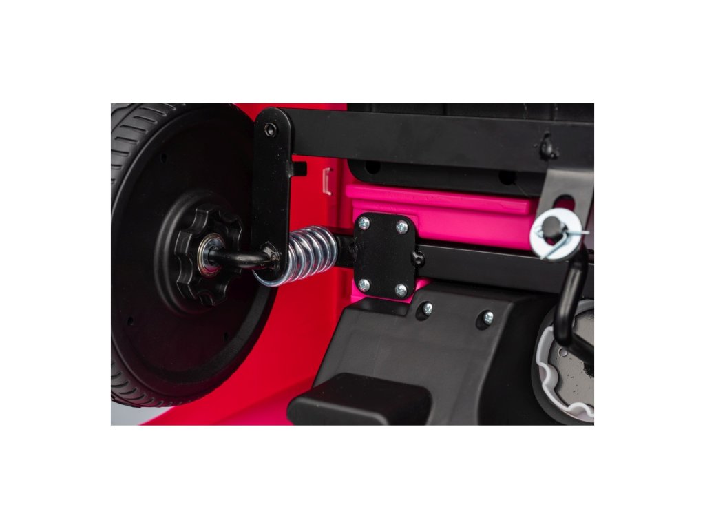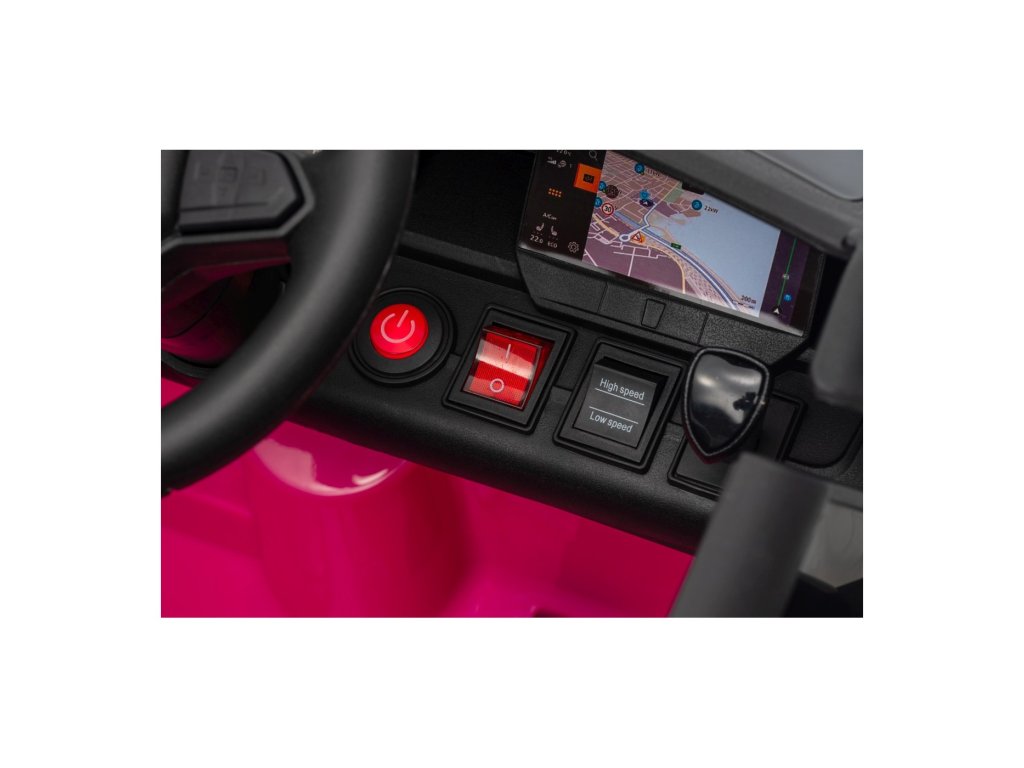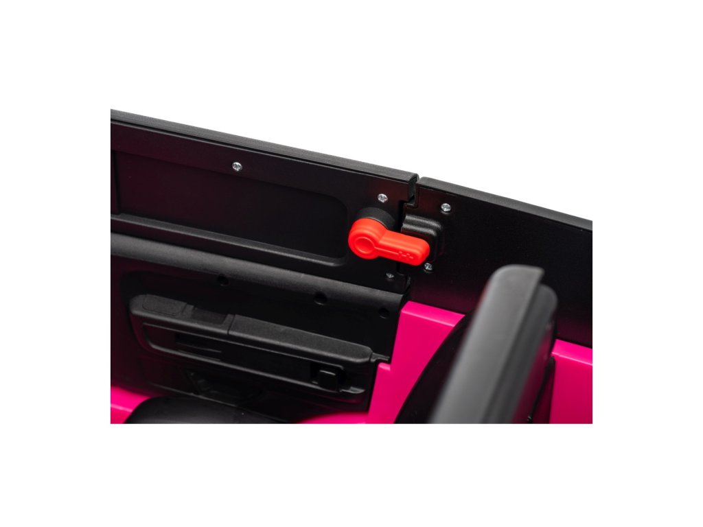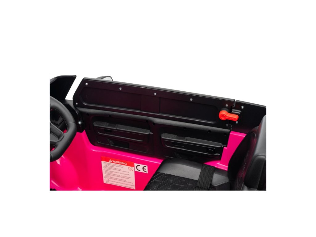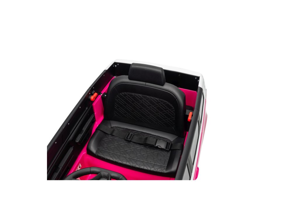 Можете да управлявате колата с помощта на дистанционно управление, което работи на честота 2,4 GHz. На дистанционното управление има три скорости и бутон за безопасност STOP, който спира колата веднага след натискане. Седалката е покрита с екологична кожа и има предпазни колани.