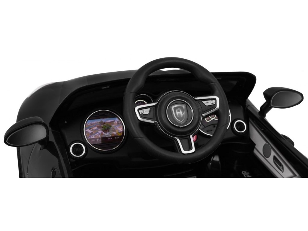 Детска електрическа количка Turbo-S в черен цвят. Електрическата a количка е оборудвана със светещи предни и задни светлини. Съдържа връзка за MP3, SD карта и USB. За безопасността на детето на седалката е поставен предпазен колан. Ако искате да се повозите, просто седнете удобно в електрическата количка и след това натиснете бутона START. В комплекта има и дистанционно управление за родители, което ще използвате, когато детето все още не може да управлява само количката.
