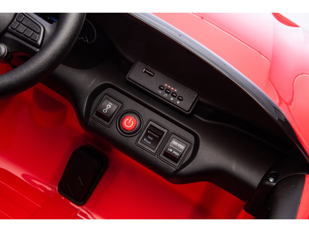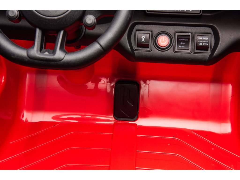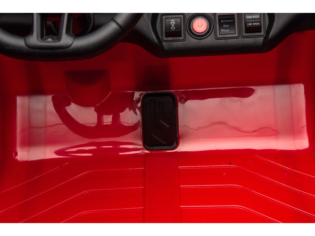 С помощта на дистанционното управление, което работи на честота 2,4 GHz, можете да регулирате скоростта на автомобила, да сменяте посоката на движение или да използвате бутона за безопасност Stop, който незабавно спира автомобила и изключва всички негови функции.