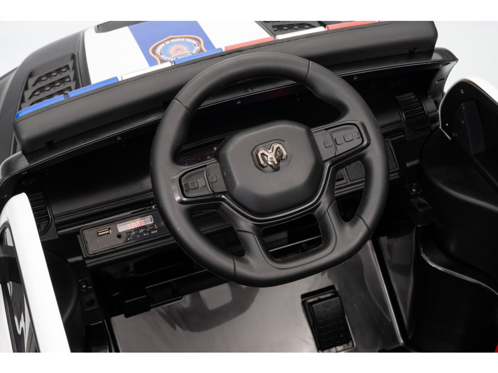 Полицейският <\/strong>електрически автомобил<\/strong> Dodge Ram <\/strong>не трябва да липсва в нито един детски гараж. Колата се задвижва от батерия с капацитет 12V 10Ah. Максималното натоварване на автомобила е 30 kg. По време на пътуване детето със сигурност ще бъде привлечено от музикалния панел с Bluetooth, MP3 и с вход USB.