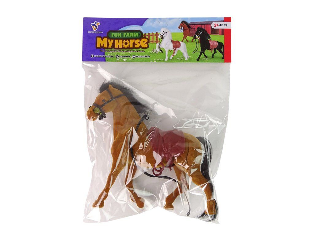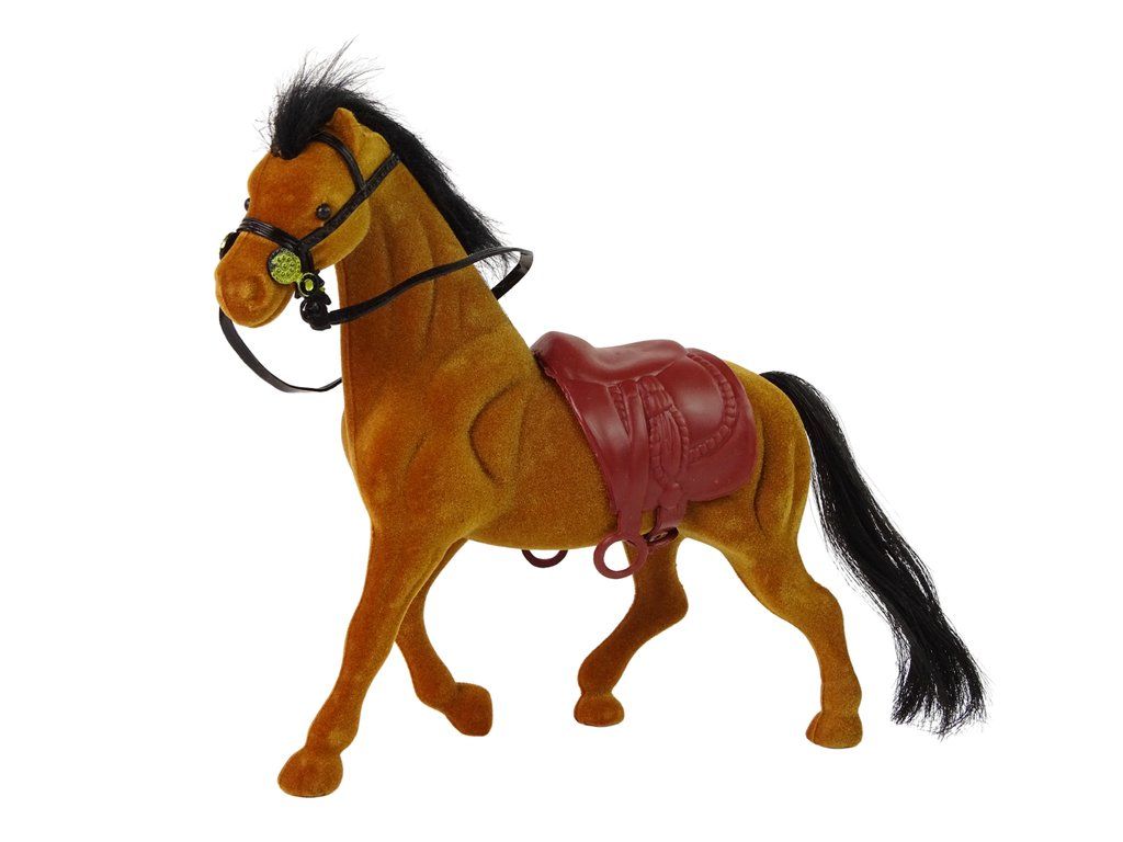 Тази фигура на кафяв кон от велур е изработена от висококачествен, приятен на допир материал. Опаковката включва фигура на кон с седло.