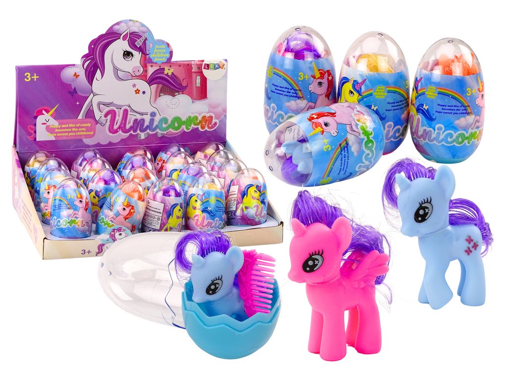 Фигура на цветен еднорог в магическо яйце с гребен микс