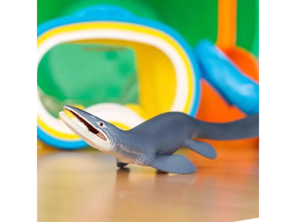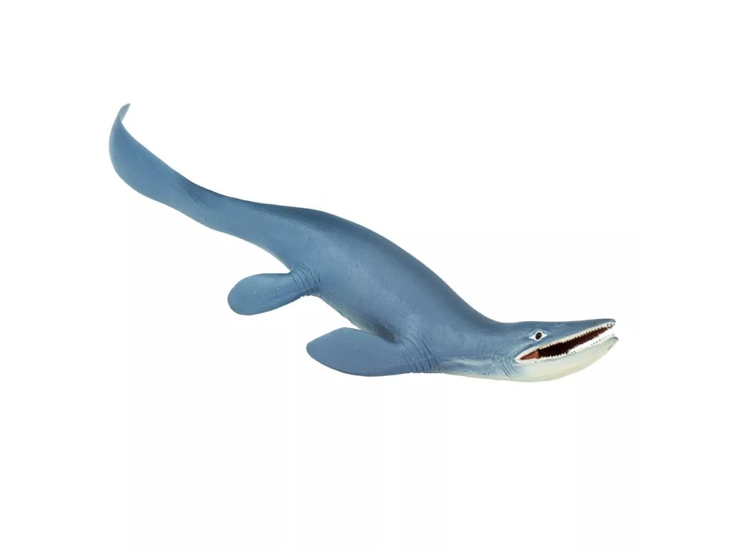 Фигурката на мозазавър представлява гладко синьо водно същество, което е било сред най-опасните обитатели на моретата.