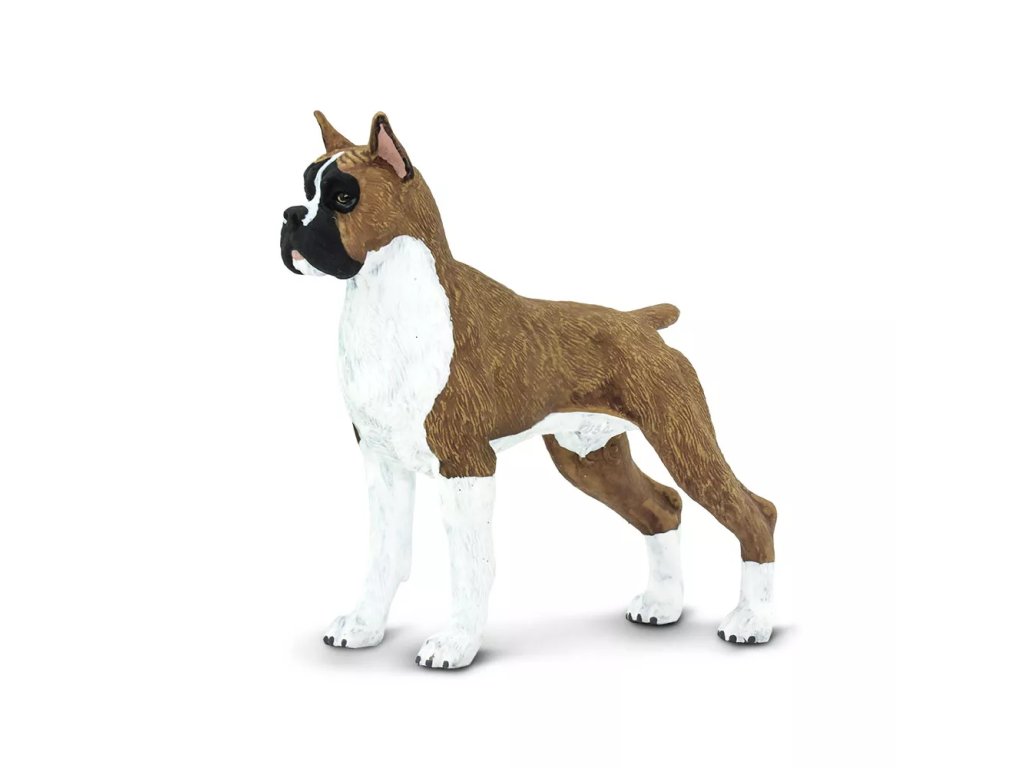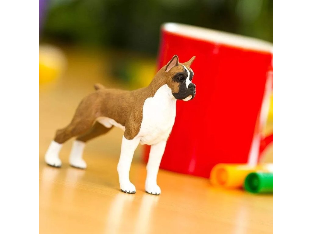 Детайлно изработена пластмасова фигурка представя породата немски боксьор — активно, приятелско и отдадено куче, подходящо за семейство.