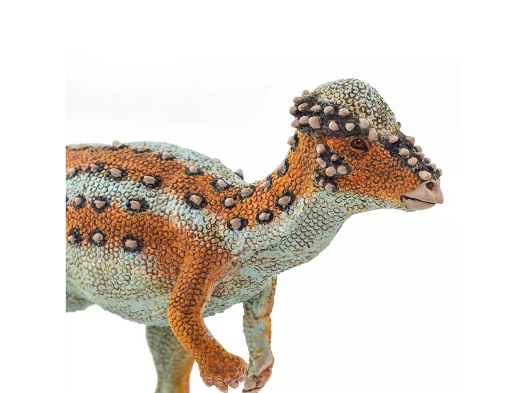 Черепът на Pachycephalosaurus понастоящем е известен най-вече като единствения фосил от вида; формата на тялото в този модел е извлечена въз основа на сродни видове. Фигурката съответства на пропорционалната обработка на основните анатомични черти на реконструкцията.