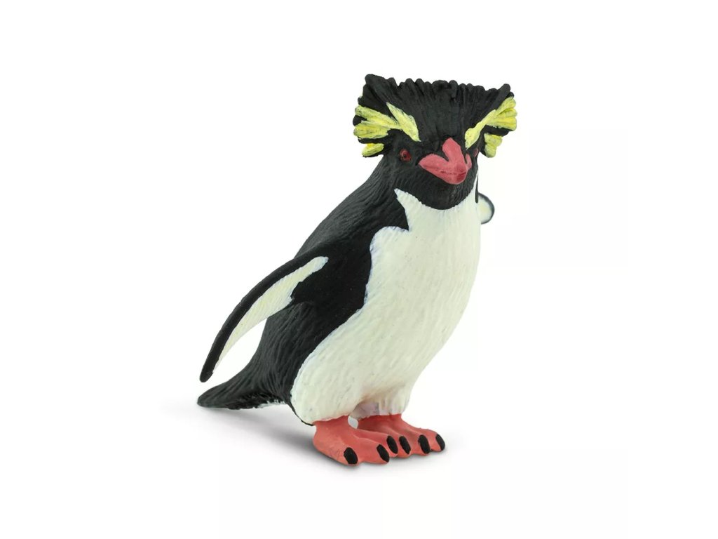 Детайлно изработена фигурка, изобразяваща скален пингвин, известен с гнезденето си на скалисти брегове и отличителните заострени пера на главата.