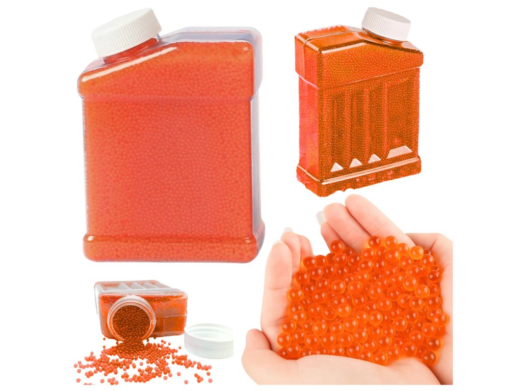 Този комплект от 20 000 гел топчета е идеален избор за всички собственици на гел топчести пистолети. Топчетата след накисване увеличават обема си до 7–8 мм и придобиват еластична, мека консистенция, която е безопасна за игра и динамична стрелба. Благодарение на наситения оранжев цвят, те са ясно видими на терена, а лесната подготовка и съхранение ги правят чудесно допълнение към всяко забавление.