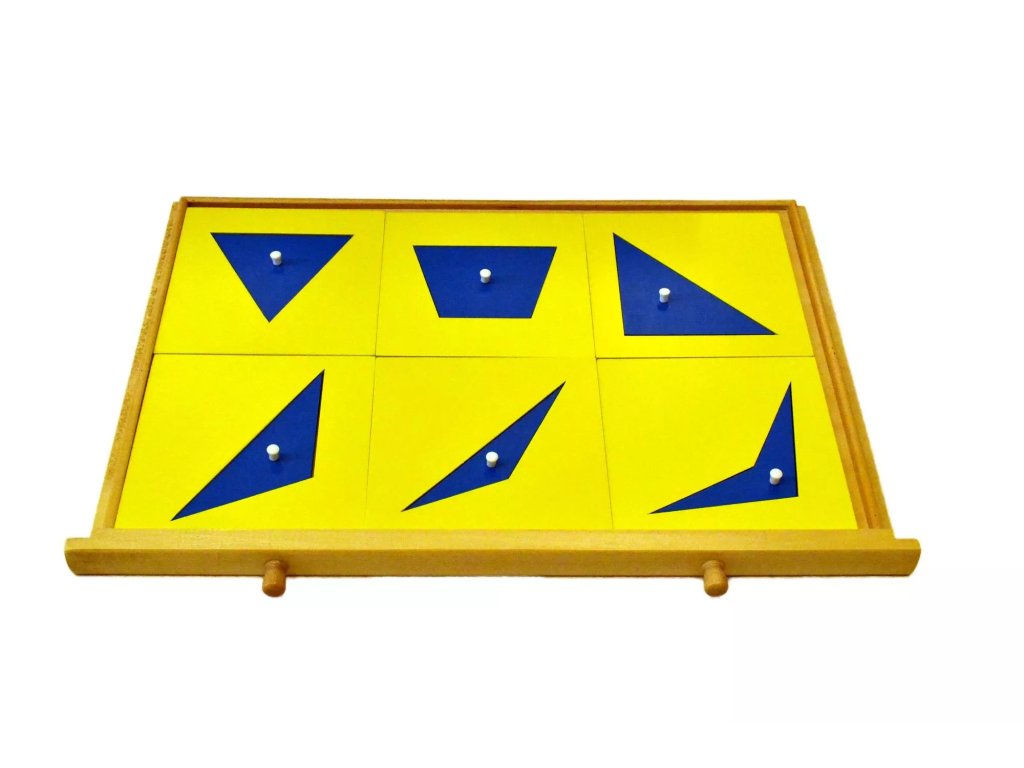 - Чекмедже 3: шест триъгълника: равностранен, равнобедрен правоъгълен, правоъгълен, равнобедрен остроъгълен, равнобедрен тъпоъгълен, тъпоъгълен.