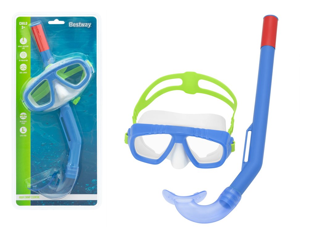 Сега можете да осигурите на вашето дете гмуркачески комплект и в същото време да му предложите здрава защита и незабравимо забавление в басейна или на почивка до водата. Този комплект се отличава с невероятен комфорт при ползване. Лещите имат защитен UV слой, който перфектно предпазва очите на вашето дете от слънчевите лъчи. Мекият шнорхел и гмуркаческите очила осигуряват удобство, благодарение на което гмуркането и изследването на подводния свят ще бъдат още по-интересни и приятни. Комплектът е подходящ за деца над 3 години.