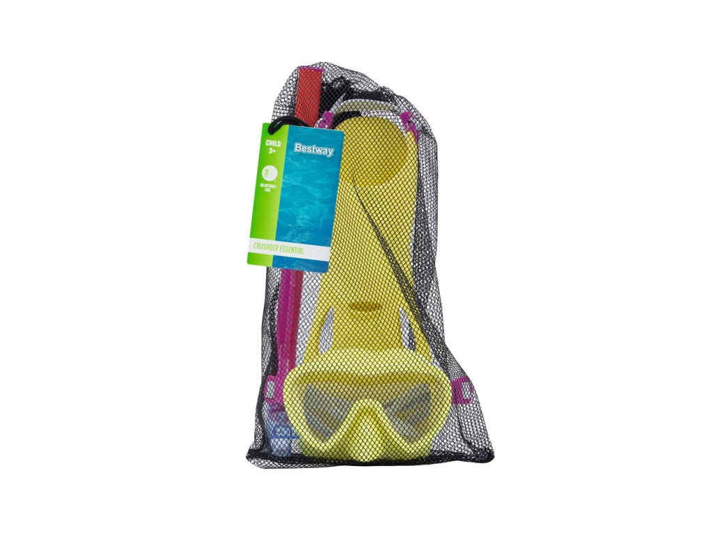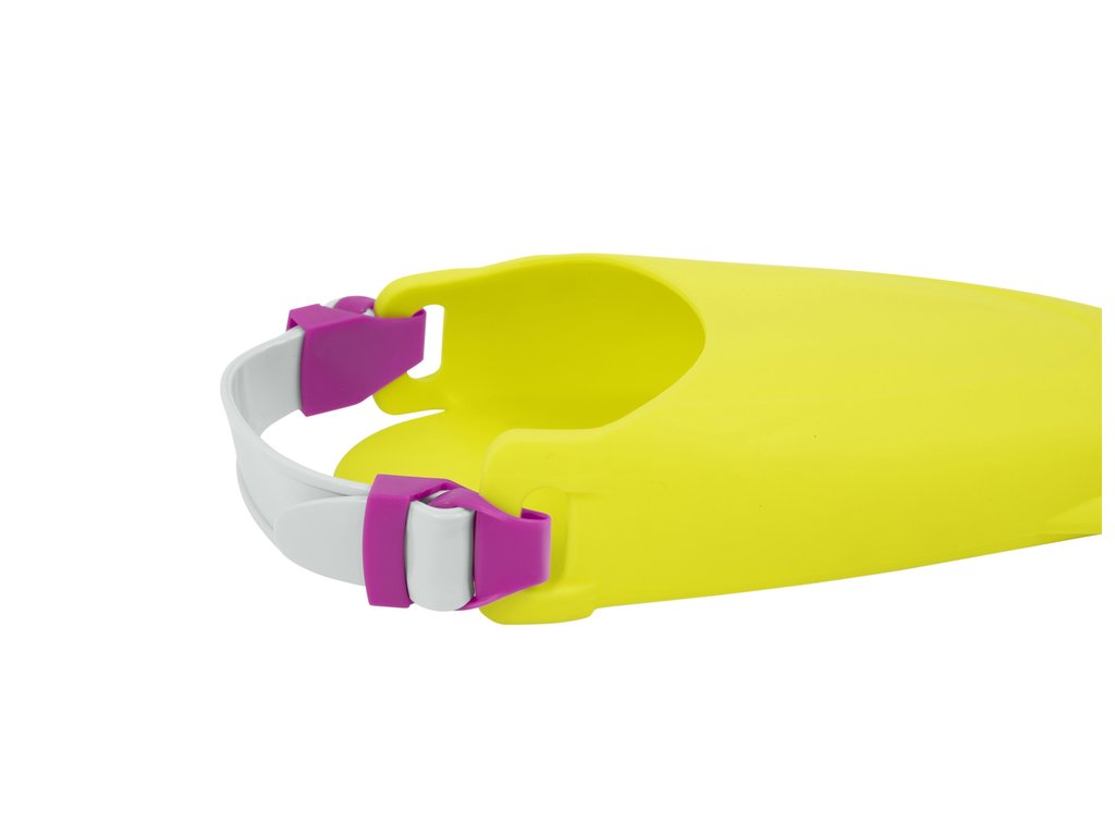 Перфектният аксесоар за подводните игри на вашето дете е вече на една ръка разстояние. Оборудвайте вашето дете с този уникален гмуркачки комплект за деца жълт - шнорхел, очила и перки, който ще му осигури незабравимо забавление през летните дни. Този комплект е предназначен за деца на възраст от 3 до 6 години. Очилата са изработени с UV-защитни лещи. Освен това очилата имат мека подплата около рамката и прилягат удобно по лицето на детето, което предотвратява навлизането на вода. Разполагат и с регулируема лента за глава, която лесно може да се нагласи според размера на главата на детето. Това предоставя и стабилност по време на подводни приключения. Меките плавници не се плъзгат от краката и са идеални за номер 24-27. Шнорхелът е снабден с технология, която предотвратява проникването на вода вътре.
