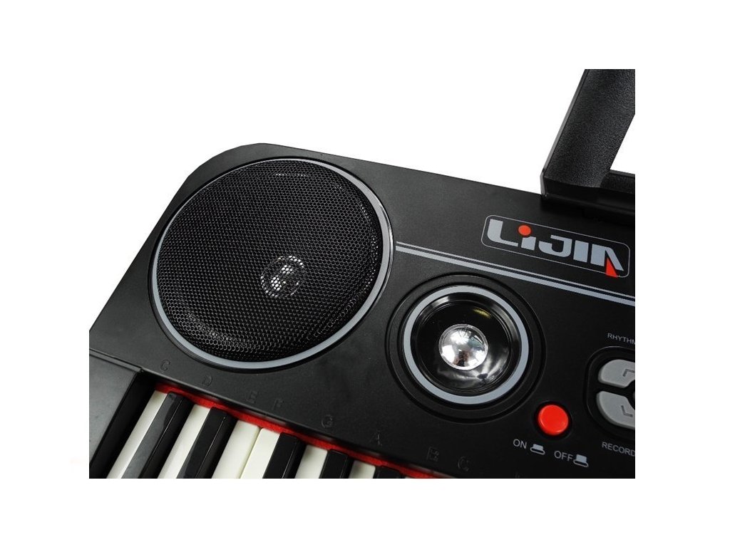 Прекрасен Голям детски клавиатура USB вход + микрофон за начинаещи музиканти с множество функции. Позволява функция за запис, има 100 предварително записани ритъма. Детето може да пее в микрофона и след това да възпроизвежда създадените композиции. Ако желаете собствен музикален съпровод, към клавиатурата може да се свърже USB устройство или мобилен телефон с жак вход.