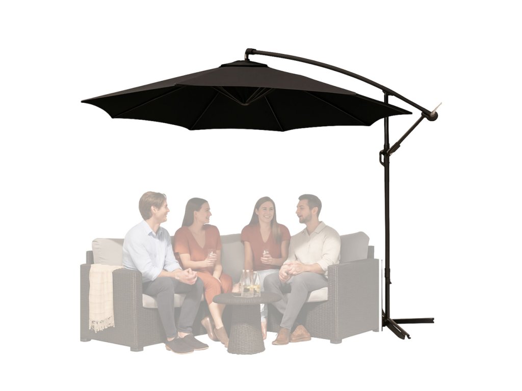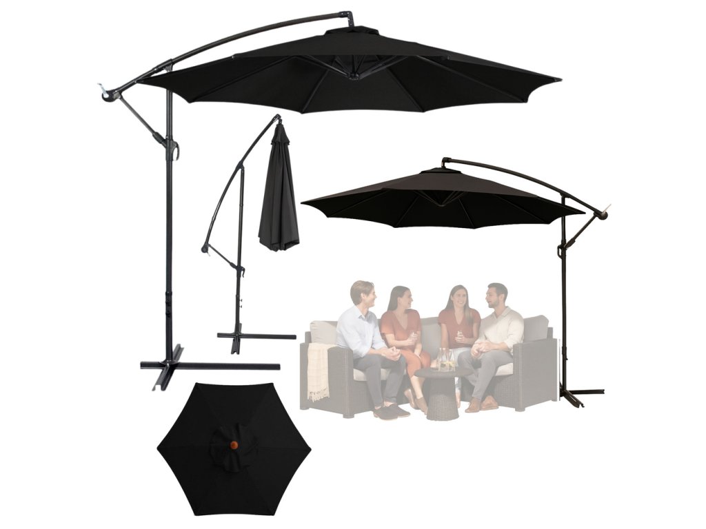 Насладете се на сянка и комфорт дори и в най-горещите летни дни благодарение на този голям страничен чадър с диаметър 350 cm. Идеален за градина, тераса или балкон – осигурява достатъчно сянка за релакс и срещи с приятели. Здравата стоманена конструкция, регулируемият наклон на сенника и практичният защитен калъф в опаковката го правят чудесен избор за всеки, който търси функционално и елегантно решение за външно засенчване.